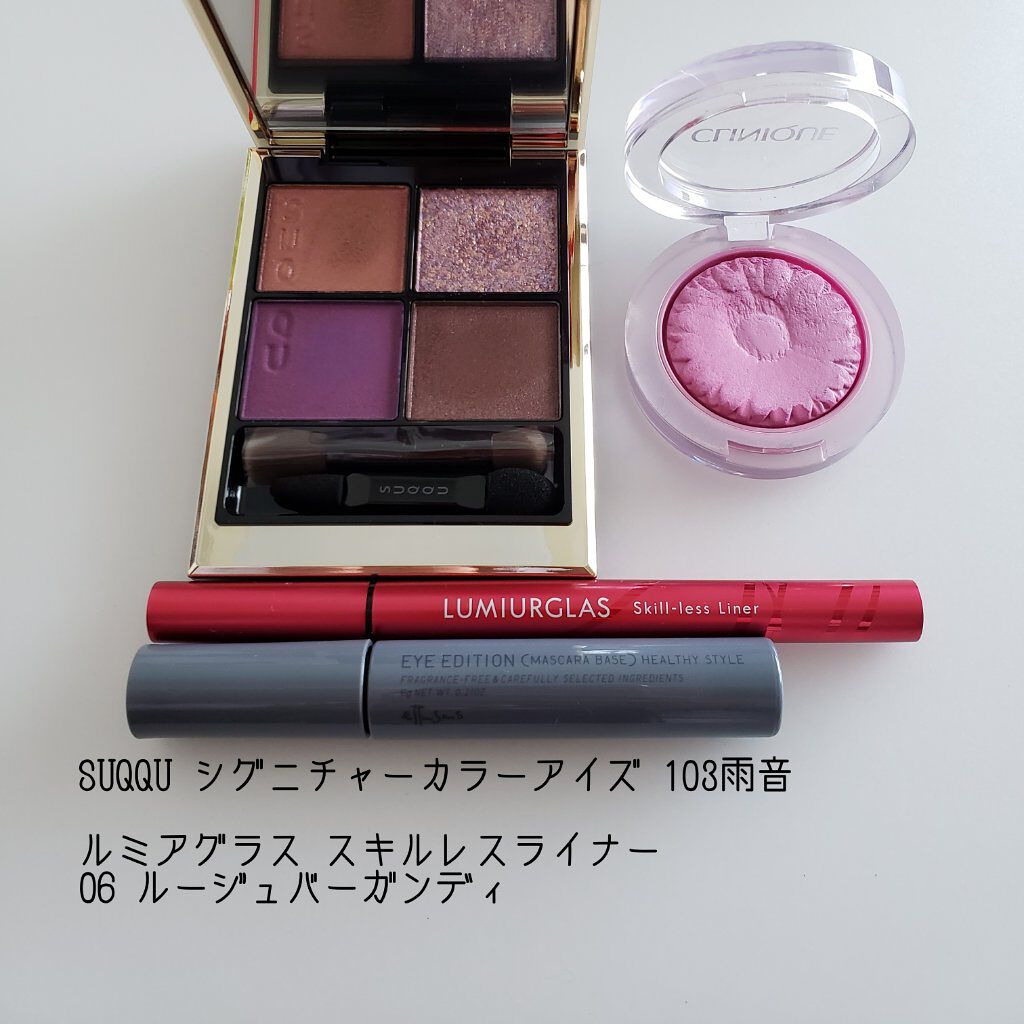 RMKのアイシャドウはこれがデビュー。こんなんブルベホイホイじゃん…。かわいすぎて即予約電話したわ🫠🩷 青みピンクに透明感爆発パープルにキラキララメ。締め色はグレージュっぽいブラウン。ブルベ大歓喜。 発色は調整しやすい。ピンクも見た目はビビッドだけど、ふんわり色づくので、好みの濃さにできるよ。