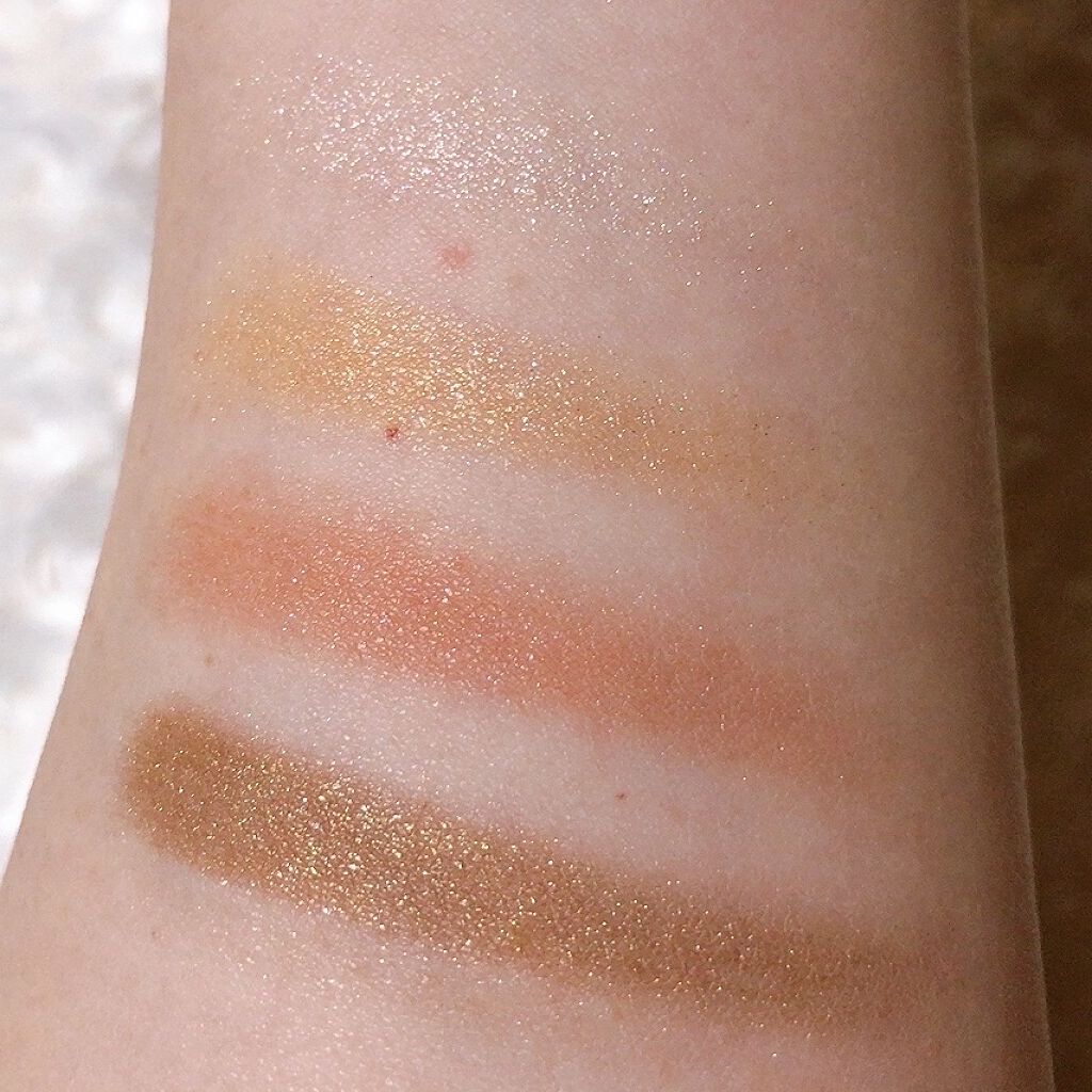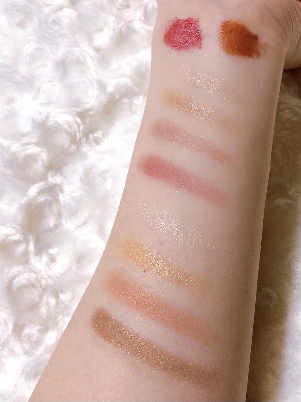 なんとなーく、可愛いなぁ…でお迎えしました☺️ 10色入りのパレットで、内2色がグリッターに近いラメ質感、マットは2色、他はシマーかな?になってました✨ 見た感じ、マーブル?になっている2色を除いて2色1組で使うとベストな感じなのかな?🤔 今回は左側3色でメイクしました! 粉質もサラッと伸ばしやすく使いやすいけど…パッケージがなんだかめちゃくちゃ安っぽい😂← 8000円くらいするのに、2000円くらいのヴィセのパレットとほぼ一緒…😇 ブランドネームでお高くなったのかな…パッケージの安っぽさが悲しくて☆4つに😭