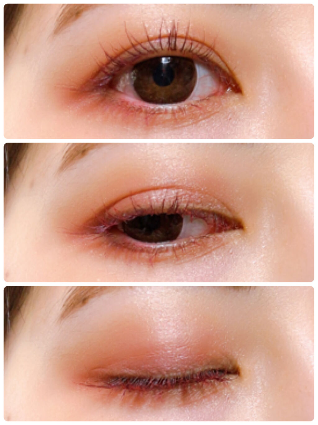 やっぱりめっちゃくすみました😇← でもツヤ感やラメ具合や粉質はさすが👏 仕上がりはほんとめちゃくちゃよし✨ アイライナーも、シュッと引いたらちゃんと細い線が描けたしいい感じ☺️