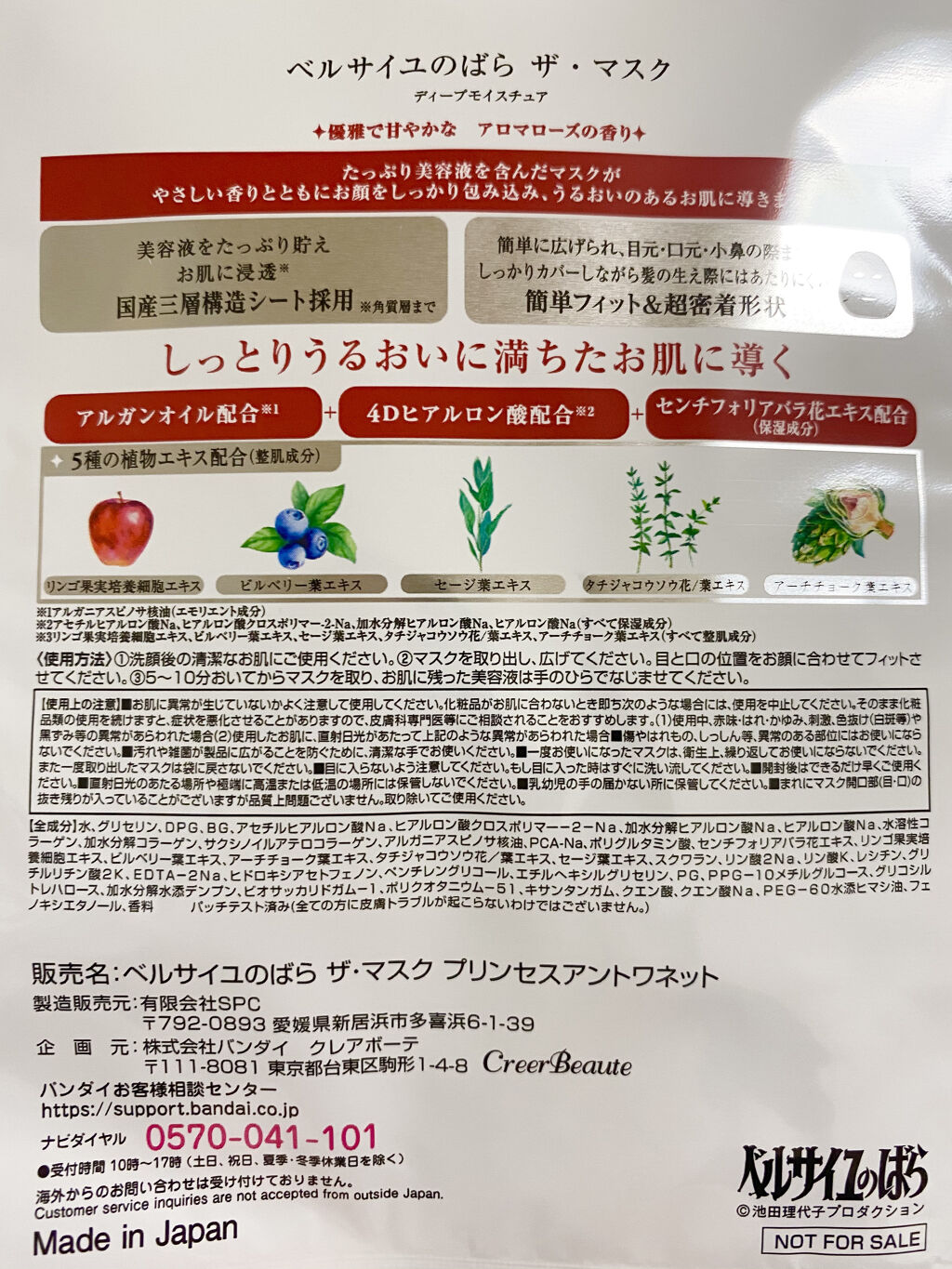 商品詳細情報クレアボーテ ベルサイユのばら ザ・マスク ディープモイスチュア