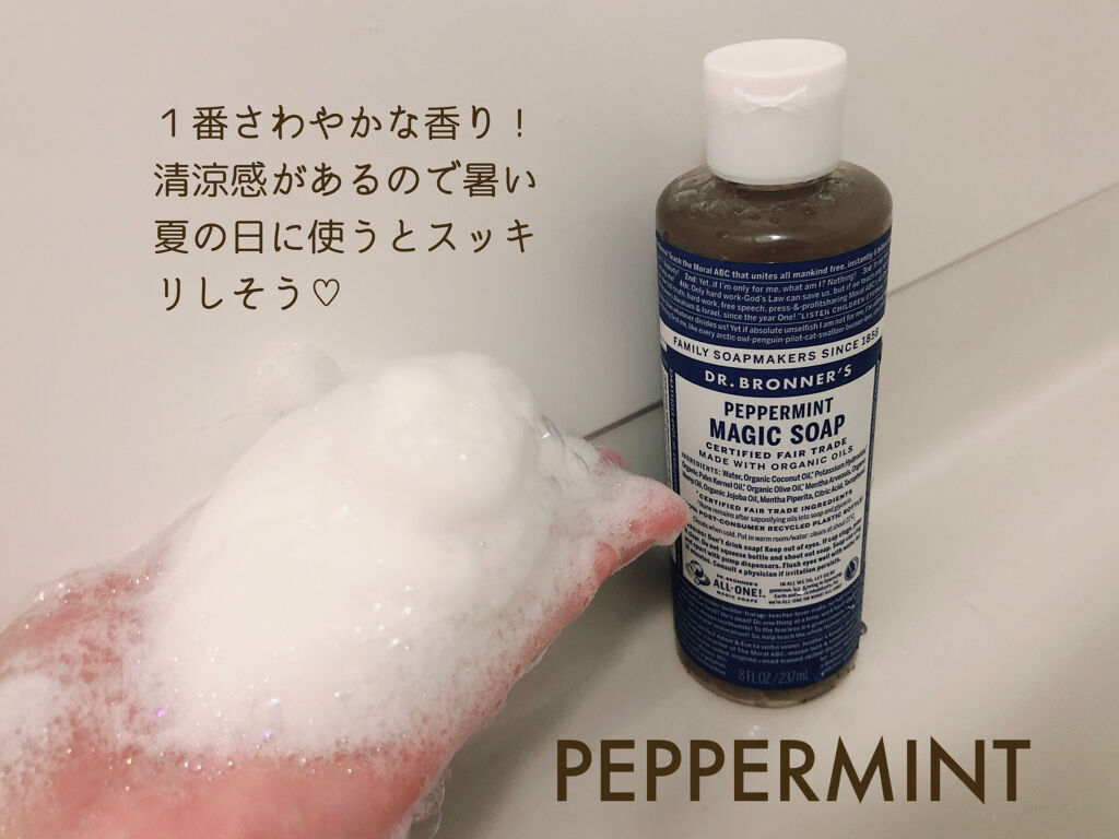 \暑がりな私のお気に入りアイテム𓂃🫧/ドクターブロナーマジックソープペパーミント⇒@drbronner.japan1本で12通りの使い方*ができる大人気のマジックソープ🩵ジメジメする梅雨や、ムシムシの夏にぴったりなペパーミントのマジックソー...