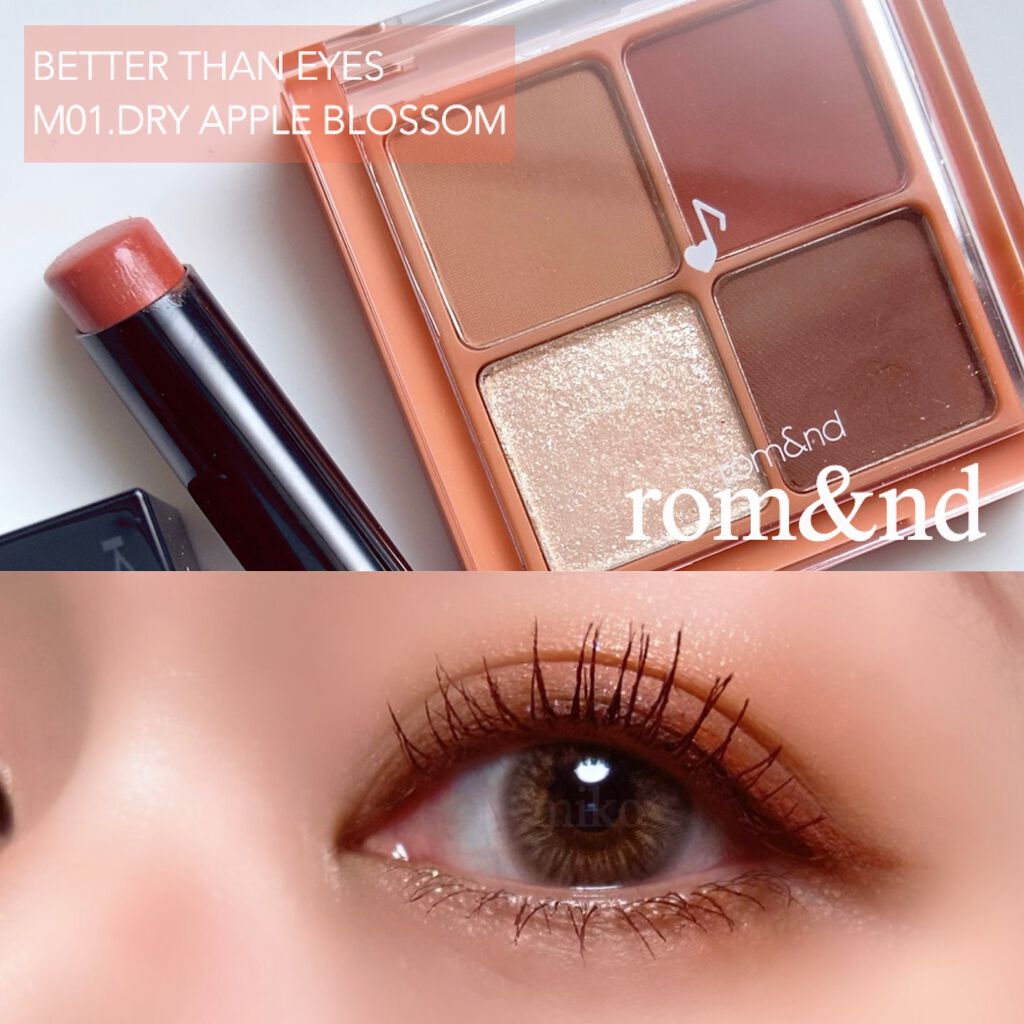 大好きなロムアンド💓☑︎rom&ndベターザンアイズミュージックシリーズ#M01DRYappleblossomパレット3個目はドライアップルブロッサム💕ロムアンドのパレットはマットがすごい粉質がよくて濃さを調節できるから好き☺️✨このパレット...