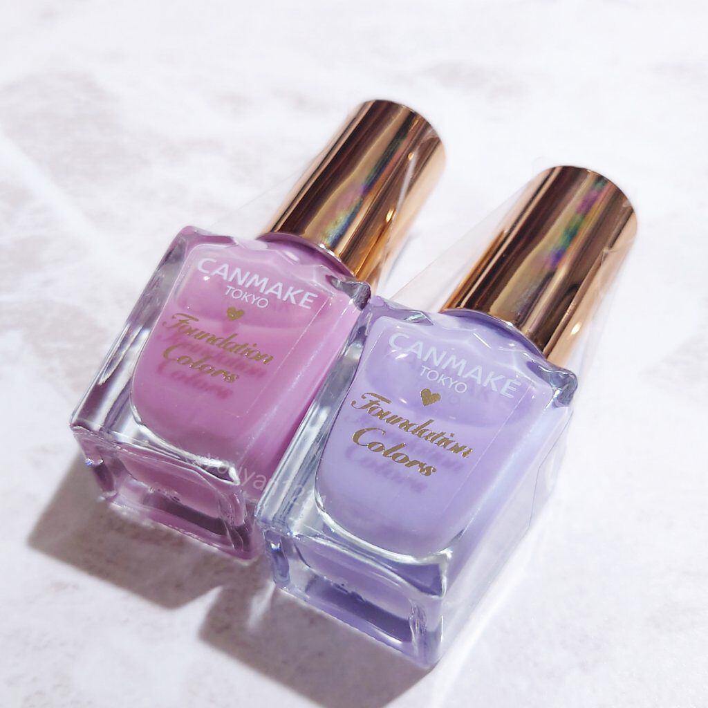 396円でケアしながら垢抜け美爪完成💅🏻✨ キャンメイクファンデーションカラーズ 1度塗りから3度塗りまで徹底スウォッチ♡ ファンデーションカラーズはベースコート不要で保湿成分配合🙌🏻 爪の凸凹や色むらをカバーしてくれ時短にも👌🏻 1度塗りでほんのり色づき 2度塗りでナチュラルな発色 3度塗りでしっかりボトルカラーの発色!