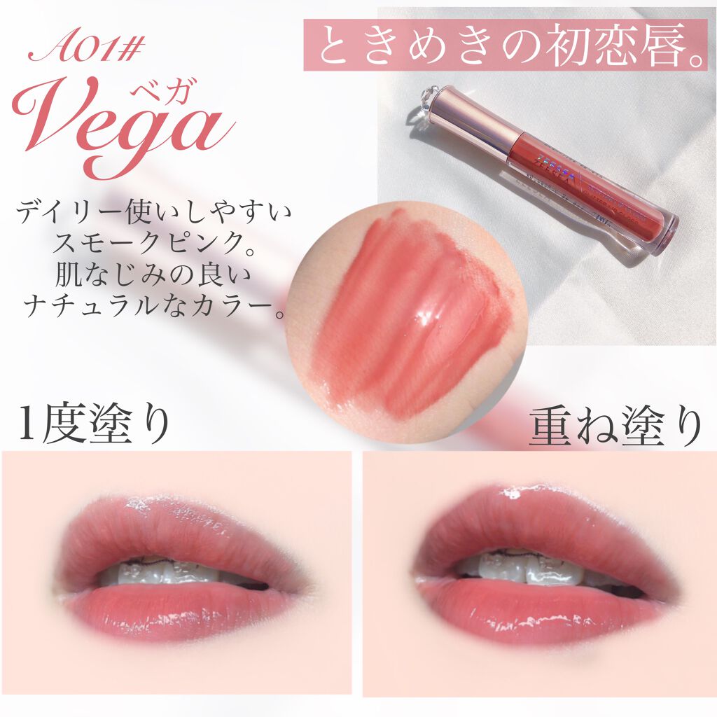 - 唇シワをカバーして、ベタベタしない、プルプルしてる粘膜色リップを演出! 01#ベガ 02#マース 03#ビーナス 04#ダイヤモンドクレバス