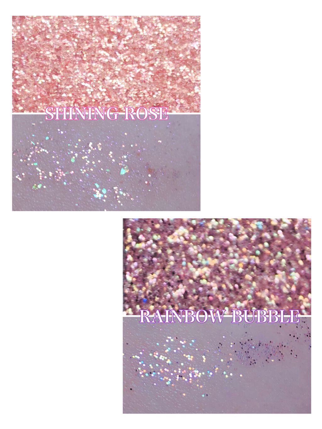ザクザク系ラメから繊細なラメまで、10種類のラメのみアイシャドウパレットです 微細ラメは本当に細くて柔らかいラメなので、涙袋にぴったり ただ、瞬きによる摩擦で、若干ラメ落ちする印象もあります 全体的にはラメ持ちもよく、輝き方も大満足✨ メイクが10倍楽しくなるラメアイシャドウです❤️