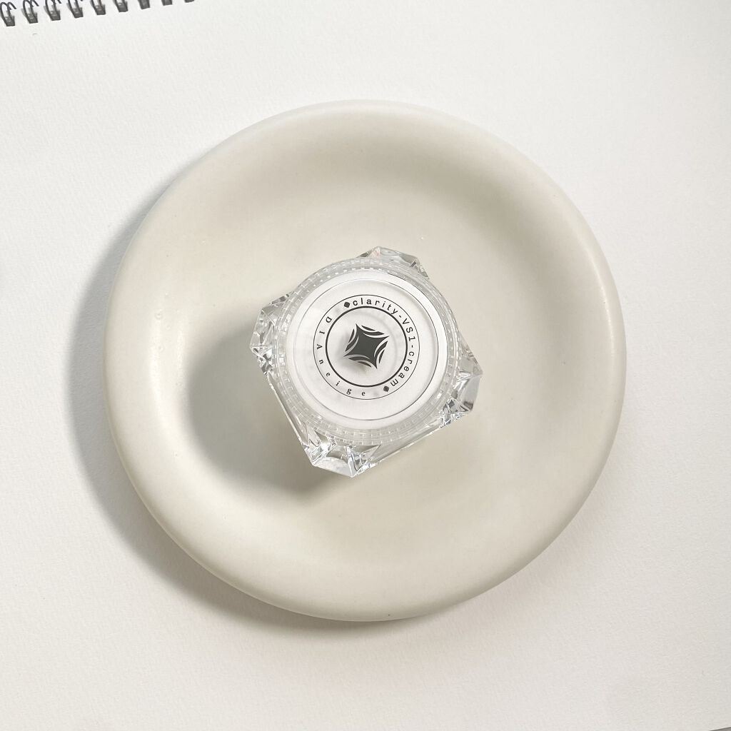 - 『クラリティVS1クリーム』は、ダウンタイムの回復、ニキビ跡のケアやシミ、アンチエイジングなど幅広い要望に応えるため、何度も試作を重ね、整形手術や美容レーザー後のダウンタイム時に使うクリームとして開発されました。 皮膚の表面ではなく内側から肌を活性化します。 1. 見た目は透明のクリーム。肌に塗ると白くなり、しばらくすると透明に変わります。 浸透する時に水分とエキスが混ざりあった際、発熱しその際に表面が白くなります。水分を吸着して肌に浸透するので、長時間の水分保持力でパック効果を発揮。そのため、保湿効果が高まります。 2. 高機能成分を使用しております。 高級ダイヤモンド末、超高圧まるごと馬プラセンタ、リンゴ幹細胞エキス、エーデルワイス成長点細胞培養液など。 3. バラペン、合成香料、石油系界面活性剤は使用しておりません。7種類のアロマオイルを独自ブレンド、さっぱり且つビターな柑橘系のリフレッシュ感に、高貴ジャスミンの香りを調合しました。 ジャスミン油、ネロリ、レモングラス油、ライム油、ブチグレン油、レモン果皮油、グレープフルーツ果皮油。