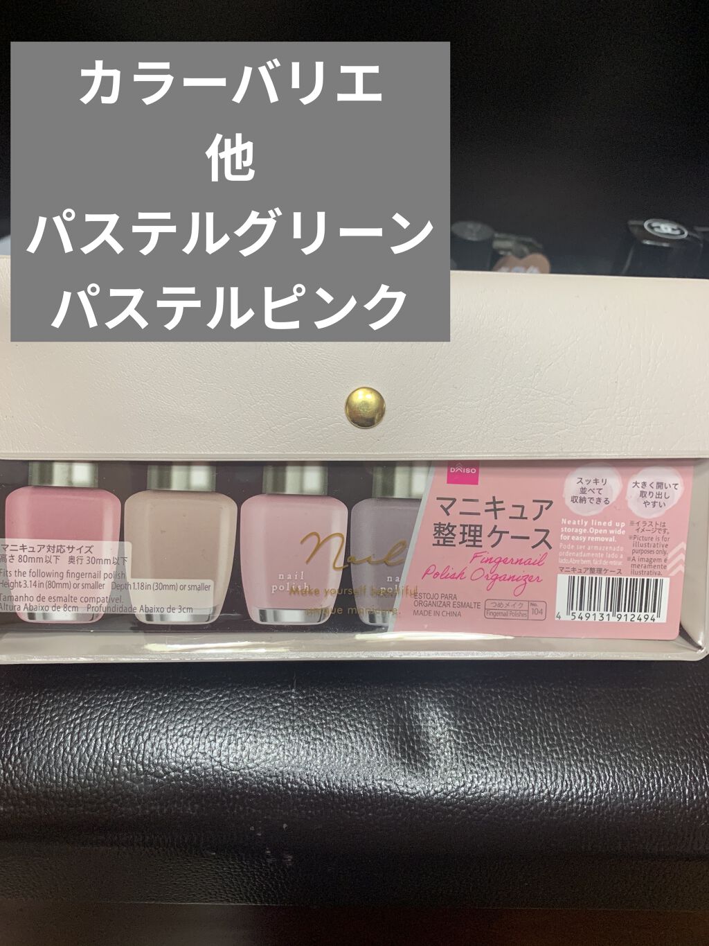 皆さまこんにちは!本日はコスメではなく、ネイル収納の投稿です!いつもDAISOのコスメ収納グッズを購入しているのですが、ネイルが増えすぎて入りきらなくなったので新しいのを買いました!本当は透明な階段みたいになっているものにしようかなと思ってい...