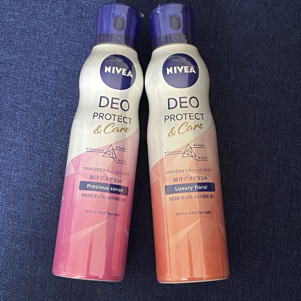 このたび、ニベアデオプロテクト&ケアスプレー プレシャスサボンの香りとニベアデオプロテクト&ケアスプレーラグジュアリーフローラルの香りを使用しています♡こちらは、これ1本で足先も含め全身にシューっとできニオイケアできるスプレーになります。ワキ...