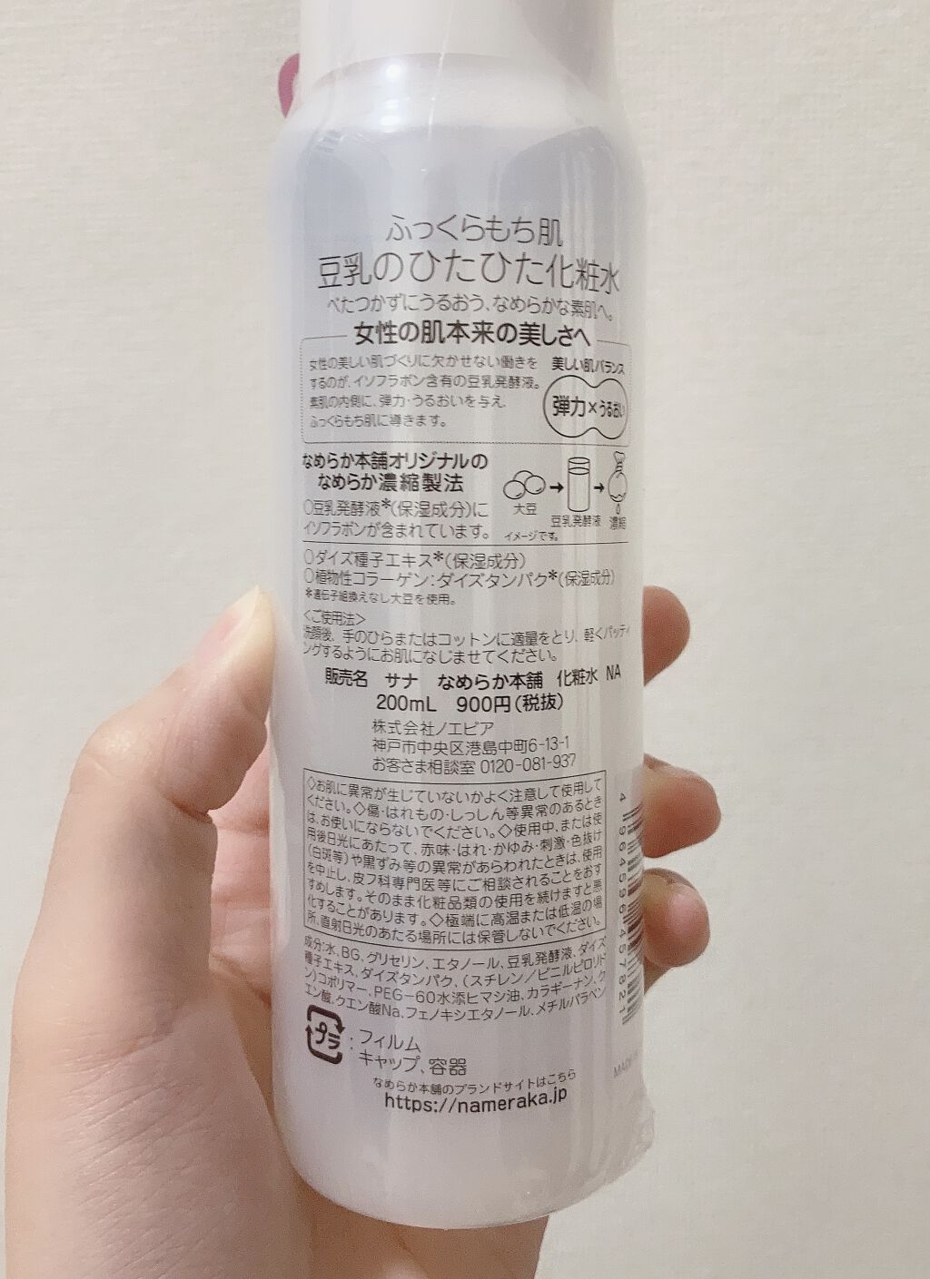 - <200ml> 水、BG、グリセリン、フェノキシエタノール、メチルパラベン、エタノール、クエン酸、ダイズ種子エキス、PEG-60水添ヒマシ油、クエン酸Na、豆乳発酵液、カラギーナン、ダイズタンパク、(スチレン/ビニルピロリドン)コポリマー