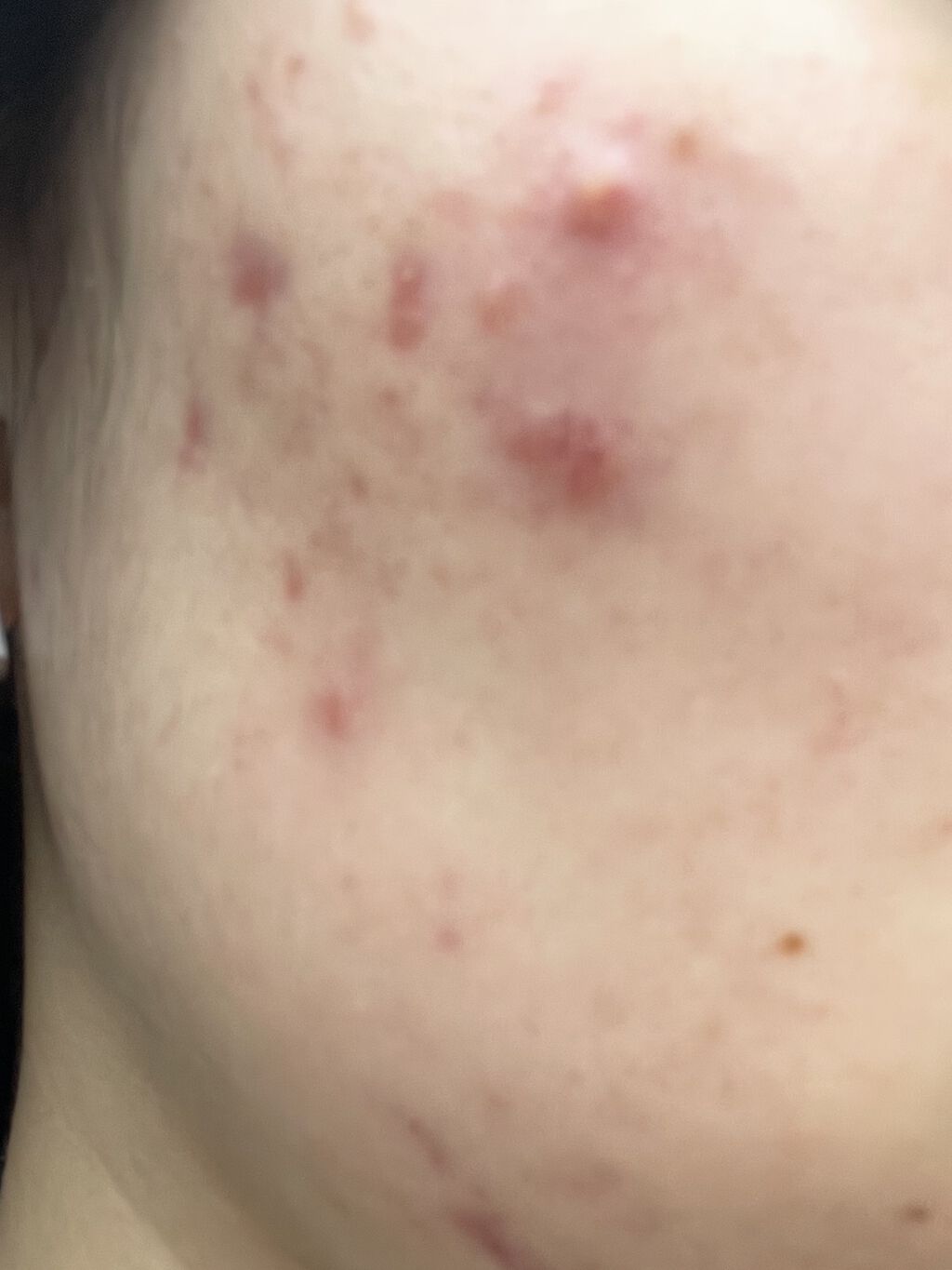 炎症ニキビ7個。いつになったら良くなるか、だいたい薬効かなすぎだろ。...