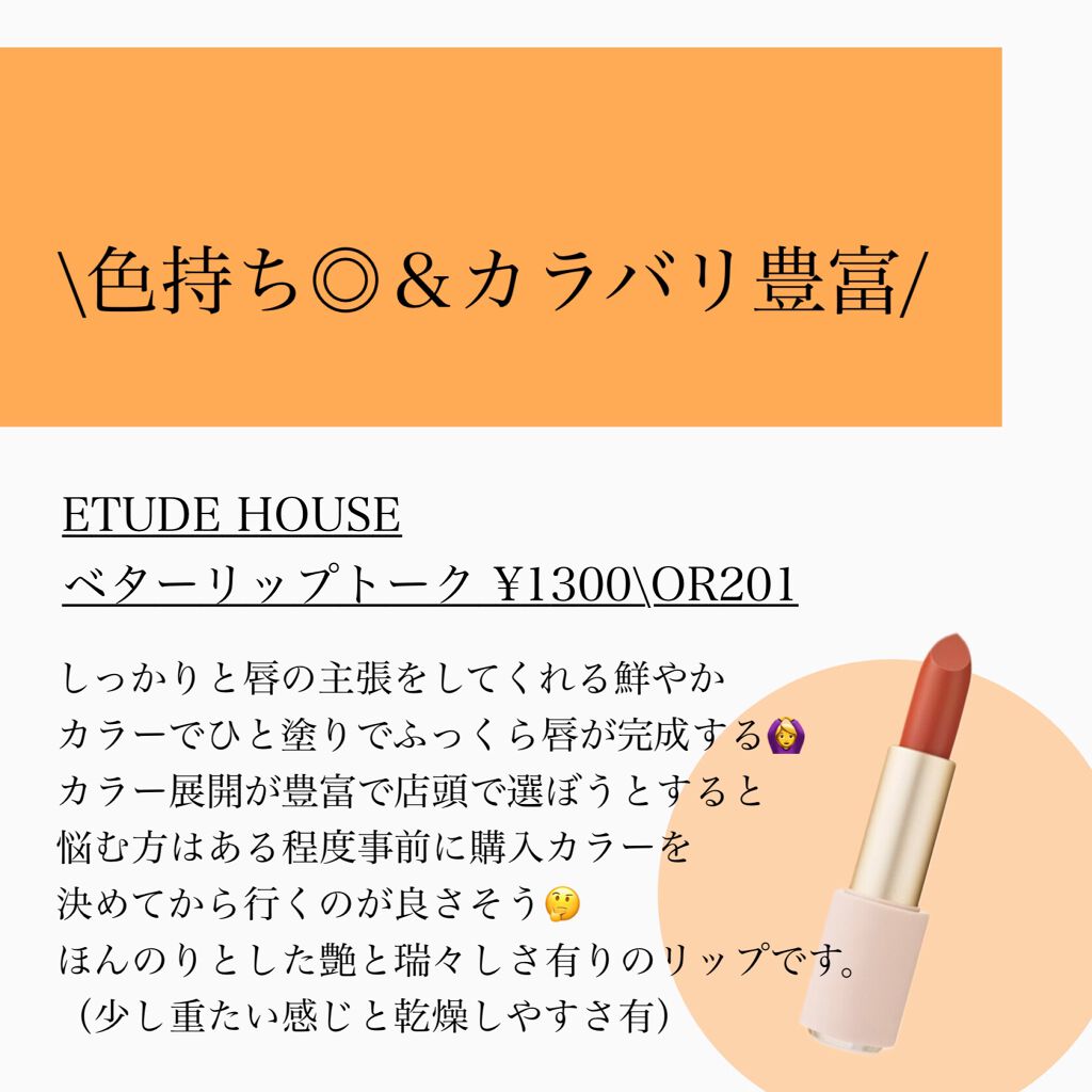 | 口紅・グロス・リップライナーランキング第6位 | ササっと塗ればシアーだし、2、3度 重ね塗りするとちゃんと色付きます。 | 詳細を見る | |