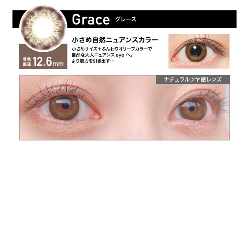 - 10~20代のイメージが強いカラーコンタクトレンズを一新し、幅広い年代の方に愛用頂ける事をコンセプトに掲げ誕生したレンズブランド。 レンズ直径14.1mmを採用し、自然な美しい瞳になれるようにデザインやイメージごとに着色直径を変えたレンズラインナップ。 度数(PWR):全30 度数 ±0.00,-0.50 -5.00(0.25step)、-5.50-10.00(0.50step) DIA14.1mm/BC8.6mm