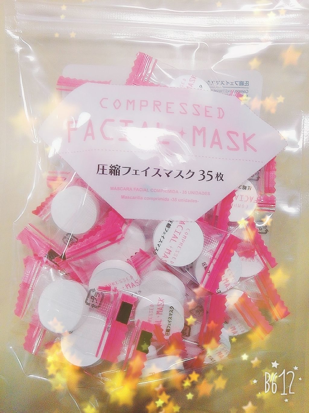 DAISO圧縮フェイスマスクたまに、これを使ってパックしているよ。110円で、35個も入って、コスパいいよね。パルプ100%化粧水を入れると膨らんでマスクになる。化粧水のフタを外して、圧縮パックを入れて、化粧水を注いで、圧縮パックが膨らむわけ...