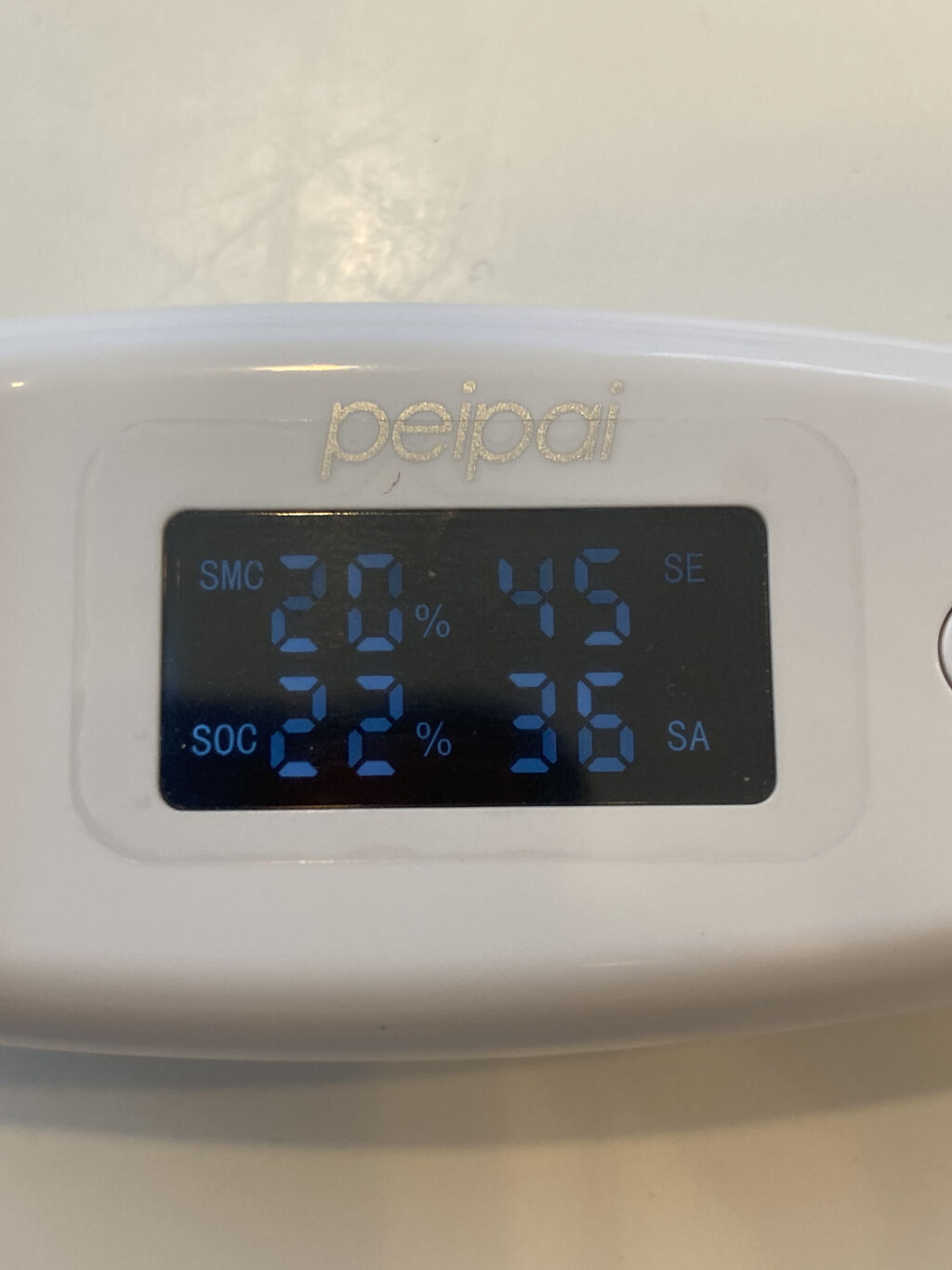 【記録用】1枚目 右頬2枚目 左頬3左頬した4右頬下5額中央6鼻7顎SMC水分SE弾力SOC油分SA肌年齢...