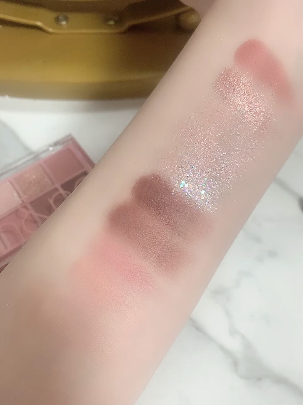 SWEET DIAは偏光があるタイプ 158はそこまできつくはないですが… 172はゴールド偏光のローズで 180はシルバー偏光のローズ 190はピンク偏光のほぼホワイトに近い色🩰 STEP BASICのほうは粉質が非常に柔らかくさらっとしていて使いやすい ROSEBROWNはラメなしで使いやすいピンクみのあるブラウン MACARONGRAYは柔らかいグレー VINTAGEVALENTINEはピンクだけど落ち着きもある