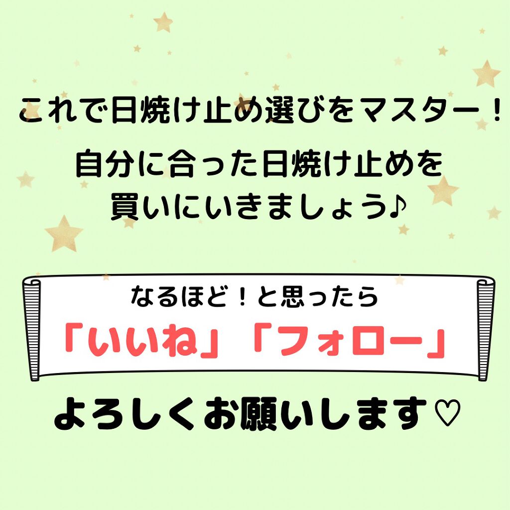 | 日焼け止め・UVケアランキング第50位 | みずみずしくて伸びがいいから 肌にすばやくなじんで、べたつきもなし👍石鹸で落とせる◎ | 詳細を見る | |