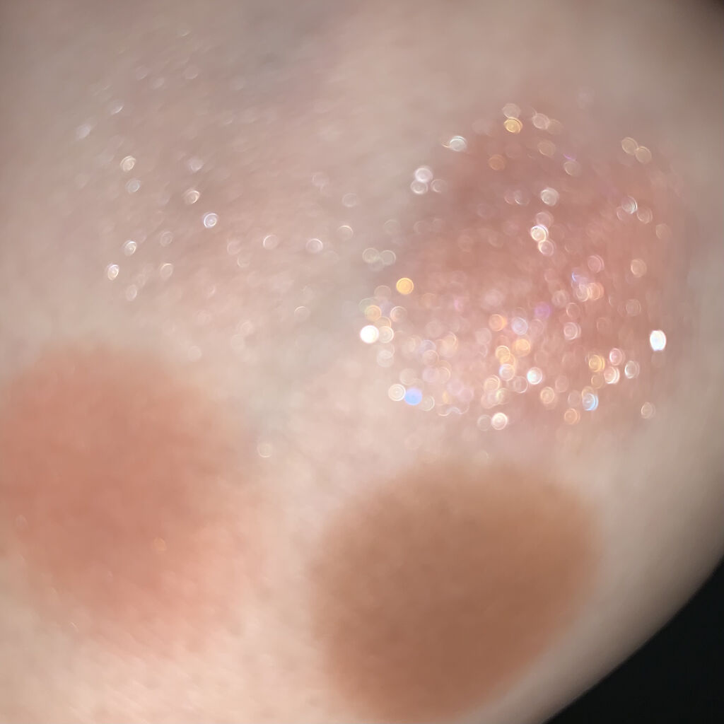 春の空気を閉じ込めたようなやわらかいカラーが揃っていて、一瞬でお気に入りになるパレット。 淡いピンクベージュはまぶた全体のトーンを整えて、ナチュラルな明るさをプラスしてくれる色。 グリッターは、まるで桜の花びらが舞うような繊細な輝き。