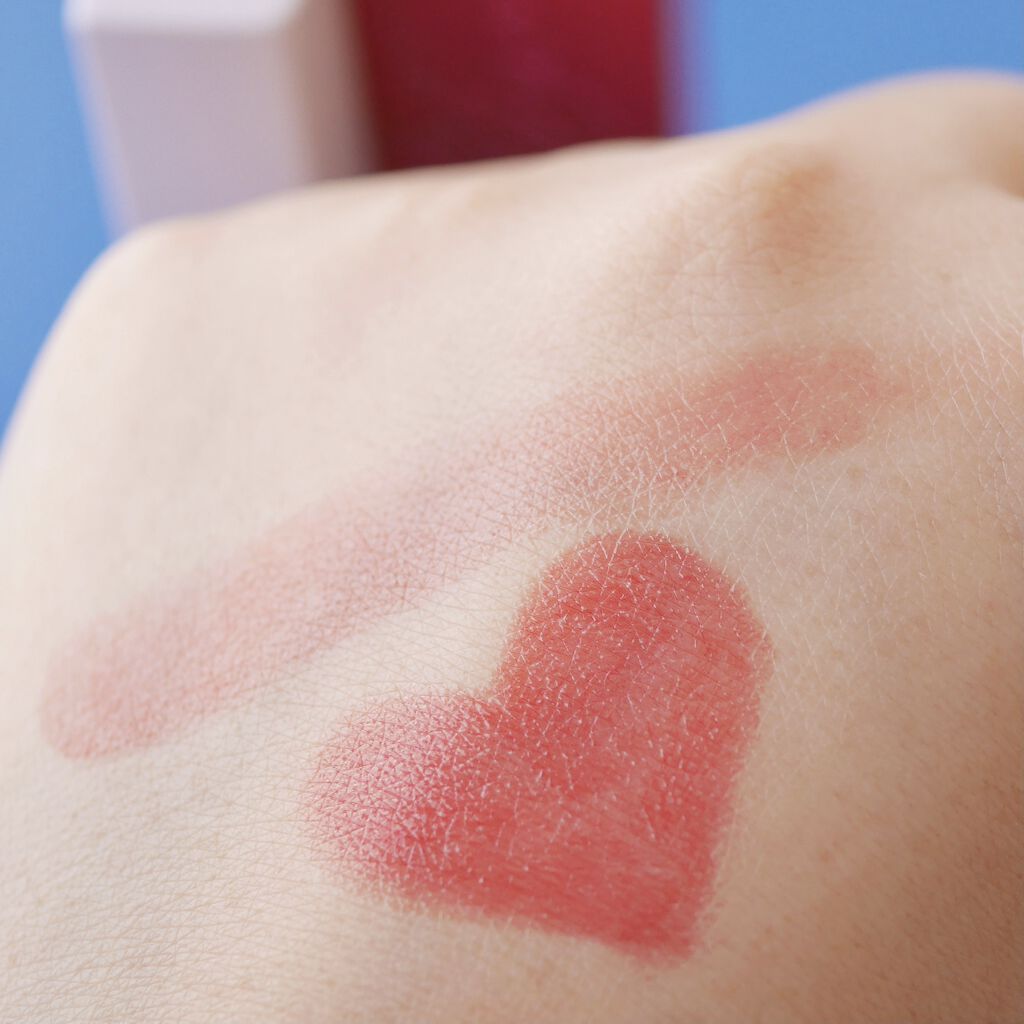 唇に溶けこむようにフィットする生体類似成分“リン脂質”やエモリエントオイル配合。 うるおい成分を抱えて高い保湿効果を持続する「ハイドロステイカプセル」、つけたての彩りや艶、なめらかさを持続させる「カラーホールドカプセル」も配合されている。 香水をイメージしたというパケがすごく素敵✨ リップも先がぷっくり丸くなっていてツヤっと可愛い。 Shine(高ツヤ) みずみずしく軽やかなつけ心地。 Glow(ツヤ) とろけるようになめらかなつけ心地。 Satin(セミツヤ) 濃密でクリーミーなつけ心地。 Velvet(セミマット) ふんわりと軽くほぐれるようなつけ心地。 Matte(マット) やわらかくなめらかなつけ心地。 26 brandyは、する~っとなめらかに塗れて、濡れたようなツヤ。 36 my theoryは、はっきり色づくのに、こちらも塗りやすい。 特にStainタイプは、ティッシュオフしても色がしっかり残っていて、持ちも良かった。