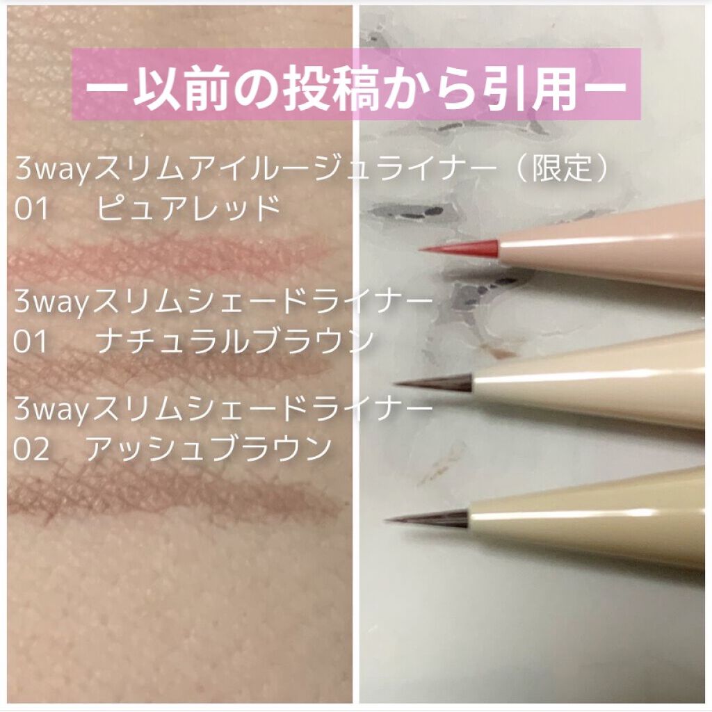 似合う色が見つかる✨新色含めて徹底レビュー!CANMAKEの涙袋ライナー無加工比較。キャンメイク3wayスリムシェードライナー01ナチュラルブラウン02 アッシュブラウン3wayスリムアイルージュライナー(限定)01ピュアレッドレビューです!...