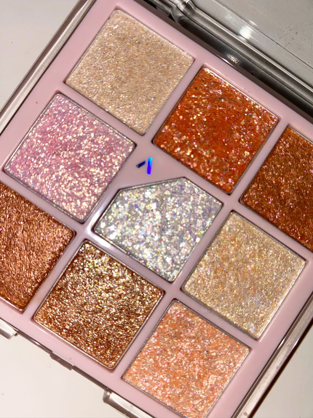このアイシャドウめちゃくちゃ可愛いし大好きなんだけど😍 明るめコーラルのアイシャドウでラメは繊細なものからザクザクのグリッターまで。 粉質もいいから粉飛びも気にならない! ラメ落ちもしにくいしすごい綺麗なの🐰 他にもたくさんギフトでいただいたんだけど好きすぎて今回はこのアイシャドウのみレビュー🩷 グリッターペディアアイパレットは全部で7色もあって めちゃくちゃ選びたい放題👍🏻 ̖́-
