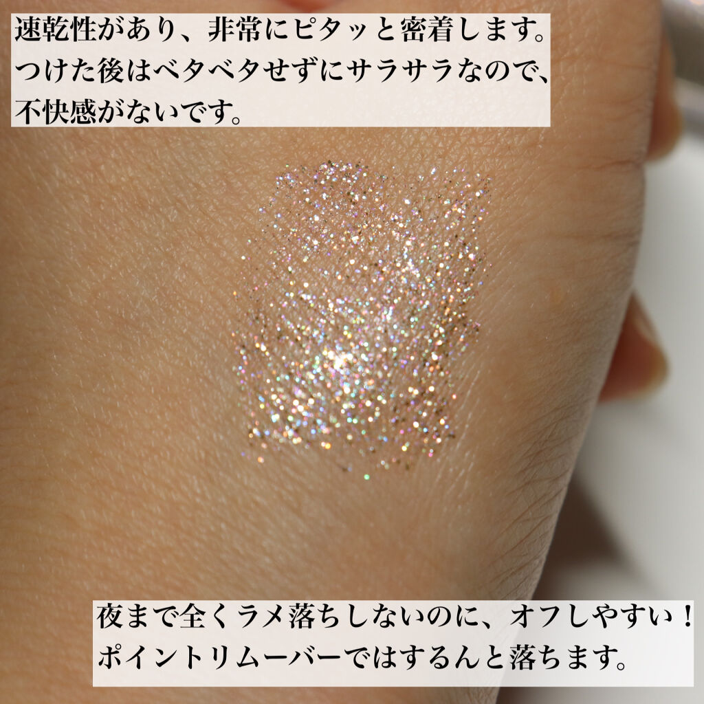 | リキッドアイシャドウランキング第2位 | 中に入っている偏光オーロララメの大きさがまた絶妙で、そのまま塗って使っても良いんだけど瞼にラメを乗せる感じで使ってもキラキラで可愛いよ | 詳細を見る | |