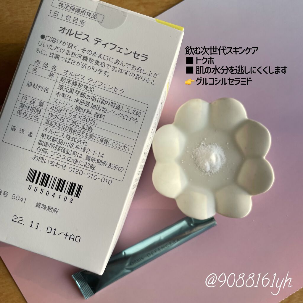 - 日本初(*1)“肌にもトクホ(*2)”! 肌の乾燥が気になる方に。高純度に精製した米胚芽由来のグルコシルセラミドを配合。「肌の水分を逃しにくくするため、肌の乾燥が気になる方に適している」と許可された、特定保健用食品(トクホ)のインナースキンケアです。 “飲むスキンケア”だから、顔だけでなく、背中や足など、スキンケア機能は全身にも。なかなか手が回らない、ボディの乾燥対策にもおすすめです。 水なしで飲めるゆず風味のさわやかなパウダーだから、いつでもどこでもおいしくスキンケアできます。 *1 販売商品として。 *2 許可表示:本品に含まれる米胚芽由来のグルコシルセラミドは、肌の水分を逃しにくくするため、肌の乾燥が気になる方に適しています。 ※本品に含まれる米胚芽由来のグルコシルセラミドは、肌の水分を逃がしにくくするため、肌の乾燥が気になる方に適しています。 ※関与成分:米胚芽由来グルコシルセラミド1.8mg(1包当り) ※本品は皮膚疾患の治療薬ではありません。 ※多量摂取により疾病が治癒したり、より健康が増進するものではありません。他の食品からの摂取量を考えて適量を摂取してください。 ※食生活は、主食、主菜、副菜を基本に、食事のバランスを。 ※「みんなのクチコミ」はあくまで個人の感想であり、効果効能を保証するものではございません。 ●1日1包を目安に、開封し、そのまま口に入れるか、水とともにお召し上がりください。 ※妊娠・授乳中の方は、お医者様とご相談のうえお召し上がりください。 <ピーチ風味> 甘い香りと爽やかな甘味が楽しめるピーチ風味 <マスカット風味> 芳醇な香りとすっきりした酸味が楽しめるマスカット風味 <ゆず風味> さわやかなゆず風味
