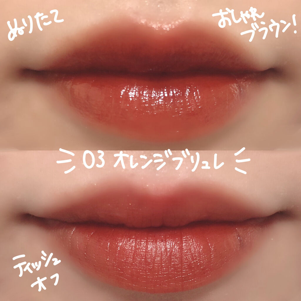 - ツヤ膜でLIPカラーを閉じ込める 塗ってから「5分」でかわいい唇完成♥ツヤがあふれ出るオイルinウォーターティント 水に対して約2倍のオイル成分を配合した「オイルinウォーター処方」 時間経過でツヤ膜がじゅわ~っとあふれ出し、 まるでグロスを重ねたような仕上がりに。みずみずしいツヤ感が持続します。 塗布後、時間経過(※)で色が定着して食べても飲んでも血色長持ち。 (※定着には個人差があります。弊社5分推奨) 高密着で唇に溶け込むように色づきます。 コップやペットボトルへの色移りがしにくくなります。