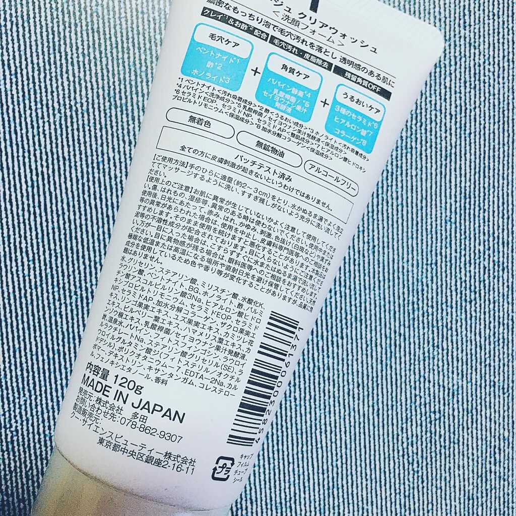 CLAYGEクリアウォッシュ【使った商品】クレージュクリアウォッシュ【商品の特徴】¥1,100円(税込)120g天然クレイ×お酢配合パパイン酵素機能性の異なる2種のクレイお酢成分3種のヒト型セラミドビタミンC誘導体配合合成着色料鉱物油紫外線吸...