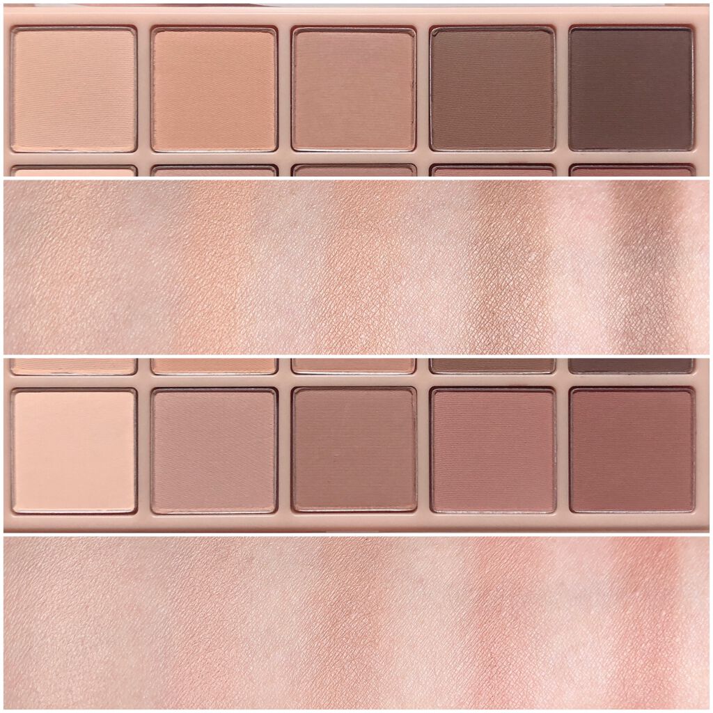 このアイシャドウパレット全体を通して言えることは、陰影の付けやすさを重要視して作られているのでとにかく陰影がつくりやすい! マットシャドウは高発色、高密着でとにかく粉質が良い。 ラメは上品なシマーからド派手な六角ホログラムまで、色々なテクスチャーが集まっているのでとにかく楽しい! ホログラムはブラシだとほぼつかないので、指でとってぬることをおすすめします。 テクスチャーはどれもワセリンを含んだかのようにしっとりとしているので、ラメ飛びせずまぶたにしっかりと密着!! 温かみのあるコーラルカラーが集まっており、イエベ春の私大歓喜😂 デイリーメイクからギラギラのパーティーメイクまで多彩に楽しめるブラウンパレット。 絶妙なローズピンクカラーが集まったお上品仕上がりなアイシャドウパレット。 彩度0なグレイッシュカラーが集まったマットシャドウパレット。 陰影が簡単に作れるまろやかなヌードブラウンが集まったアイシャドウパレット, 彩度低めの優しいミュートピンクカラーが集まったパレット💜