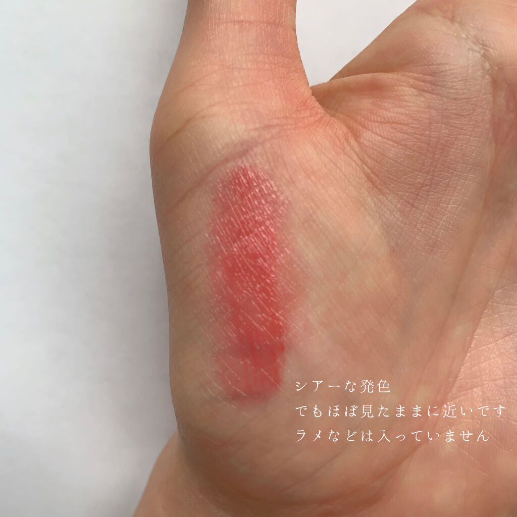 | 口紅・グロス・リップライナーランキング第155位 | 溶けるとオイルっぽいテクスチャーなのですが しっとり感がある割にサラッとしていて ベタつかないので使いやすい! | 詳細を見る | ||