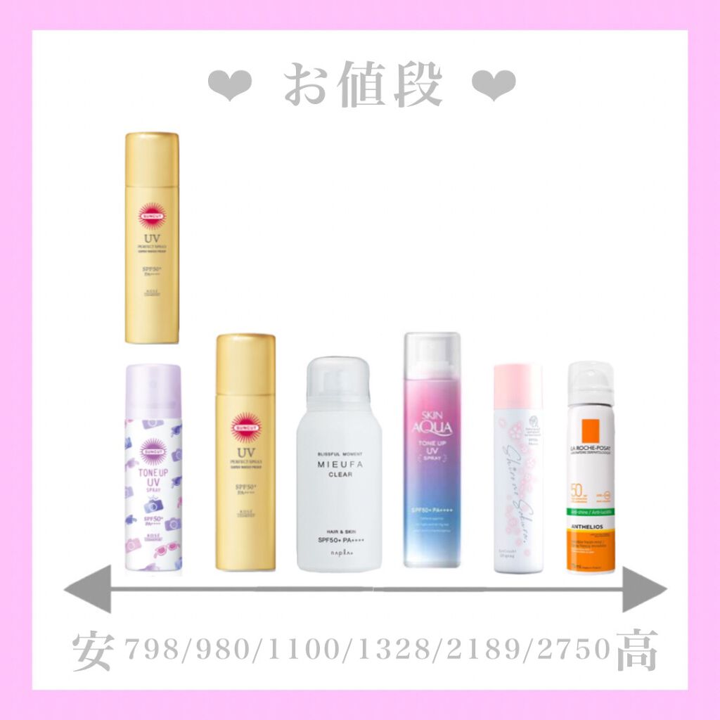 \日焼け止めスプレー☀️/家にある全6種類集めてみた🌻ラロッシュポゼ以外は国内最高基準のSPF50+PA++++💯っていってもラロッシュポゼもSPF50PA++++やから全然問題ないよ~🙆🏼♀️【1位】シロノサクラ大好きなブランド🥺💎髪に使...