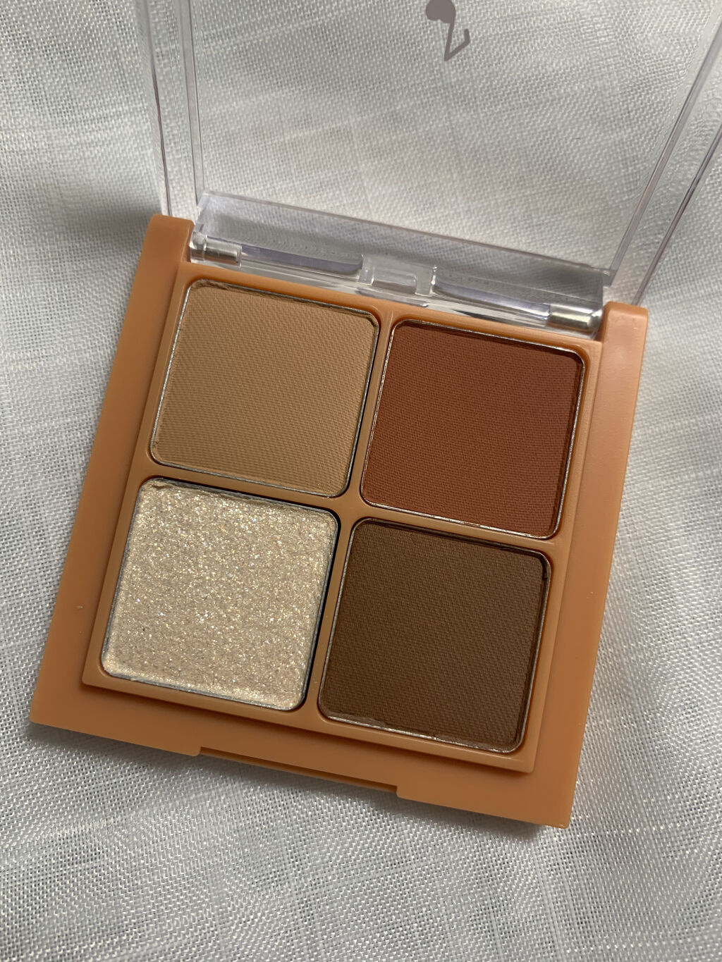 ブラウンのアイシャドウって年齢関係なく使えるからめちゃくちゃいいですよね! このアイシャドウはナチュラルに盛れるし、どんな肌色の方でも使えるカラーだと思います! ベースカラーです。ベージュカラーでとっても肌馴染みがいいです! 締め色のブラウンですね!他のアイシャドウって締め色が締めすぎって感じしませんか?笑 キラキラっとしたラメです!上2色はほんとにお上品な感じに仕上がるので、もう少しキラキラたしたいなって感じる時に使えます! これはハイライトになってます!このアイシャドウにあったカラーのハイライトなので浮くことがなく、ポーチにこのパレットが入ってるだけでメイク直しが楽になります! 粉飛びすることなく密着してくれて、ナチュラルに盛ってくれます! ほんとデイリー使いしやすいカラーだし、どんな服でも肌色でも年齢問わず使えるカラーです! オレンジとか赤とかカラーメイクすること多いけど、結局なんだかんだこのブラウンのアイシャドウに戻ってきちゃうんですよね笑 そのくらい本当に最高のアイシャドウです!