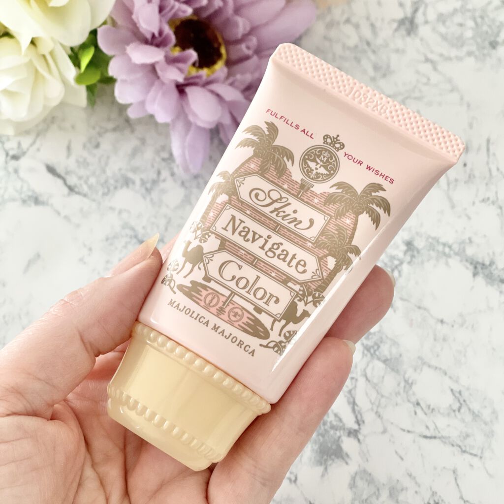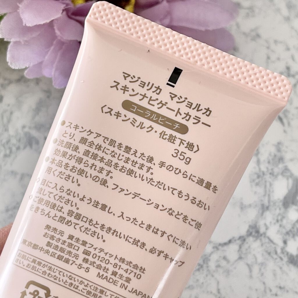 みずみずしくて肌補正も素晴らしい下地✨️ MAJOLICA MAJORCA スキンナビゲートカラー コーラルピーチ ¥1,320 テクスチャはゆるっゆるでオールインワンジェルくらいな勢いでみずみずしくて、乾燥しない。ヨレやすくもない。 このコーラルピーチはわたしの頬にしつこくあるソバカスをめっちゃごまかして補正してくれる!