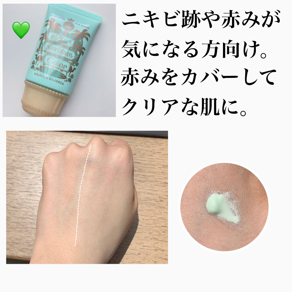 みずみずしくて肌補正も素晴らしい下地✨️ MAJOLICA MAJORCA スキンナビゲートカラー コーラルピーチ ¥1,320 テクスチャはゆるっゆるでオールインワンジェルくらいな勢いでみずみずしくて、乾燥しない。ヨレやすくもない。 このコーラルピーチはわたしの頬にしつこくあるソバカスをめっちゃごまかして補正してくれる!