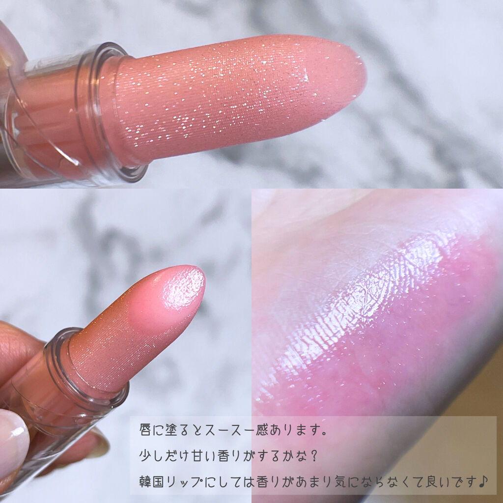 ※2023年6月開封品リップ(ティント)・商品名MISSHA(ミシャ)グリッタープリズムティントリップGPK01ボンボンピンク・値段定価1650円(1100円で購入)・購入場所イオン・評価★☆☆☆☆あまーい香り塗るとすーすーじんじんテクスチャ...