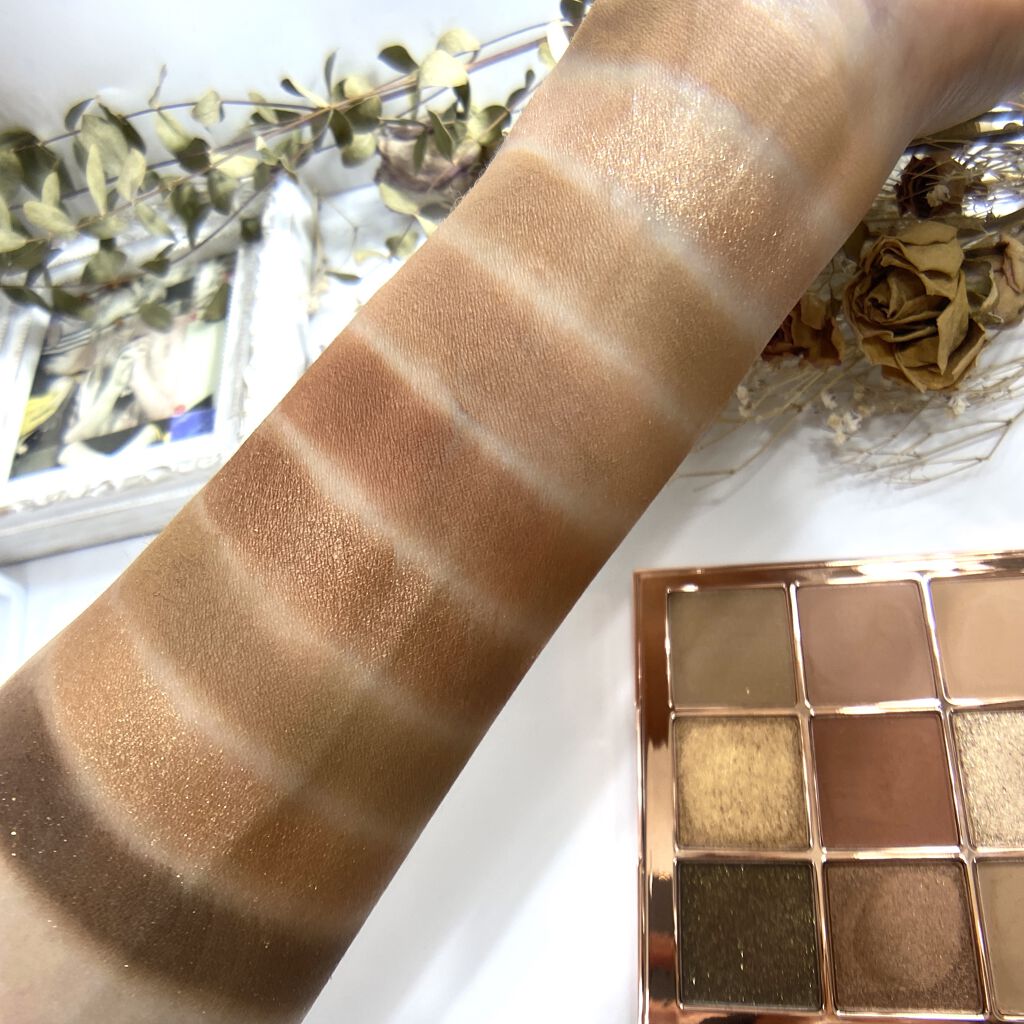 ジンジャーブラウンを基調としたアイシャドウパレット!マット、シマー、グリッターの異なる質感がバランスよく配置されて落ち着いたブラウン系やレッドがかった色味が中心。 発色が良く粉質がしっとりしていて密着度も高いです。アイシャドウだけでなくチークやシェーディングとしても使えます。 デイリー使いから特別な日のメイクまで対応できる万能パレット♪韓国コスメらしいキラキラ感も楽しめておすすめです。