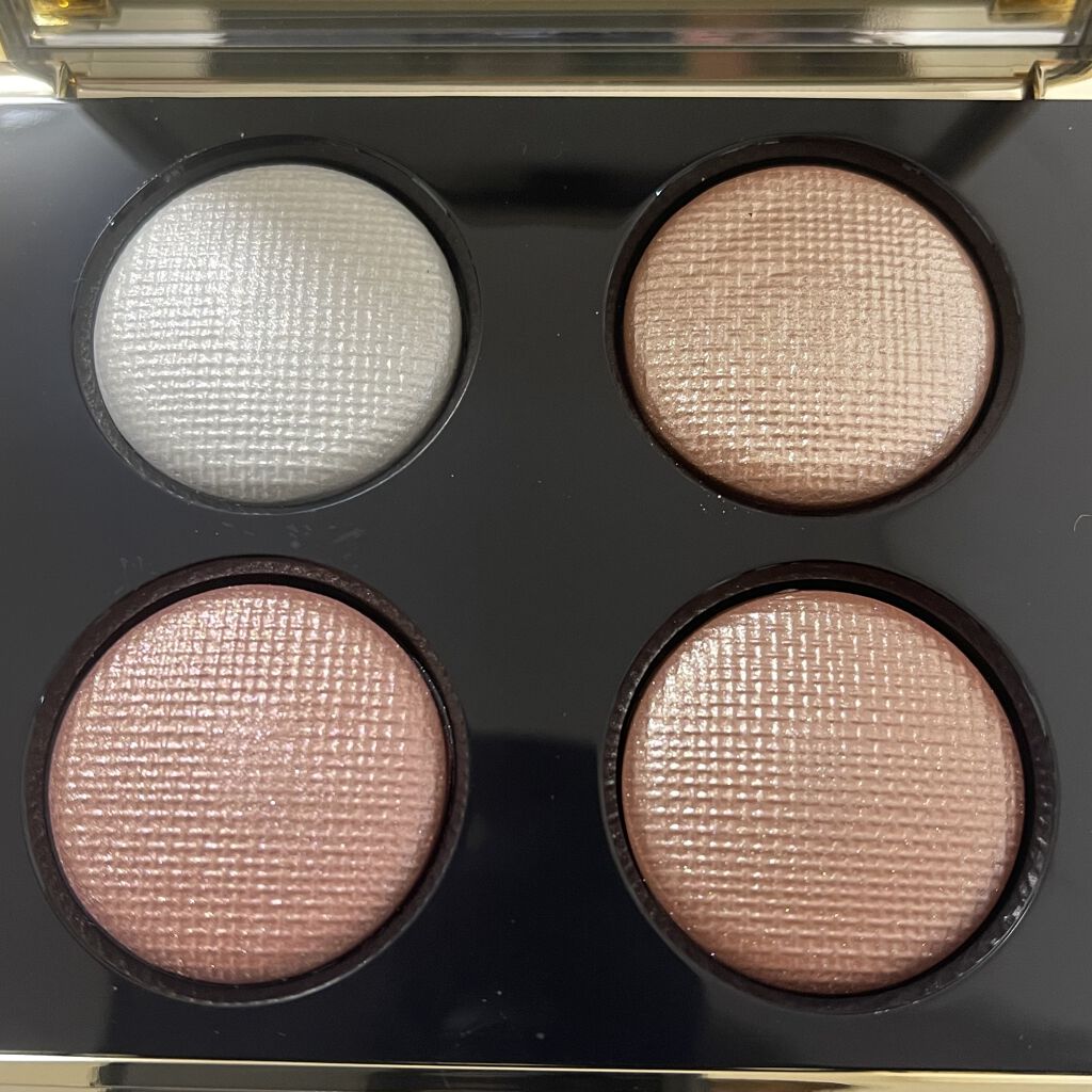 左上:ホワイトゴールドのパールとラメ(パール強め) 右上:偏光っぽいピンクのパールとラメ 左下:ホワイトベースにピンク系の偏光パール 左下:コーラルとシルバーのパールとラメ(ラメ強め) 左下のパールが、パッと見発色は弱いのですが すごく自然かつ絶妙なツヤ感を出してくれます。 こちらをCゾーンや目頭・鼻筋・顎先に、 右上のピンク系をチークの上部に重ねるのがお気に入り✨ 左上・左下はしっかり輝きを出したい時や、 アイシャドウ・チークに重ねて使うのもオススメです⭕️