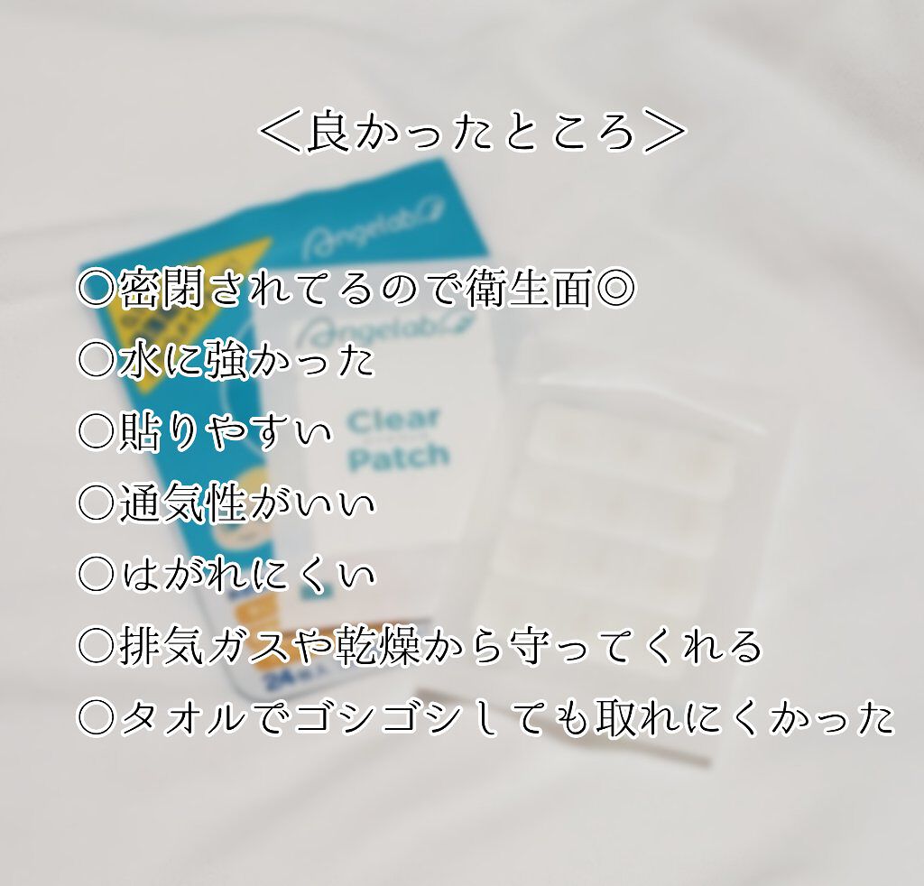 クリアパッチは気になる肌悩みを隠せるコンシーラーパッチ🤍 外的刺激もしっかりガードしてくれるよ♪ 私がこれまで使ったことのあるパッチの中でAngelabはかなり薄い方で見た目の違和感が少ないな〜って思った! お手頃価格で嬉しい♪ CICAティーツリークリアパッチプラスの方も気になる💖