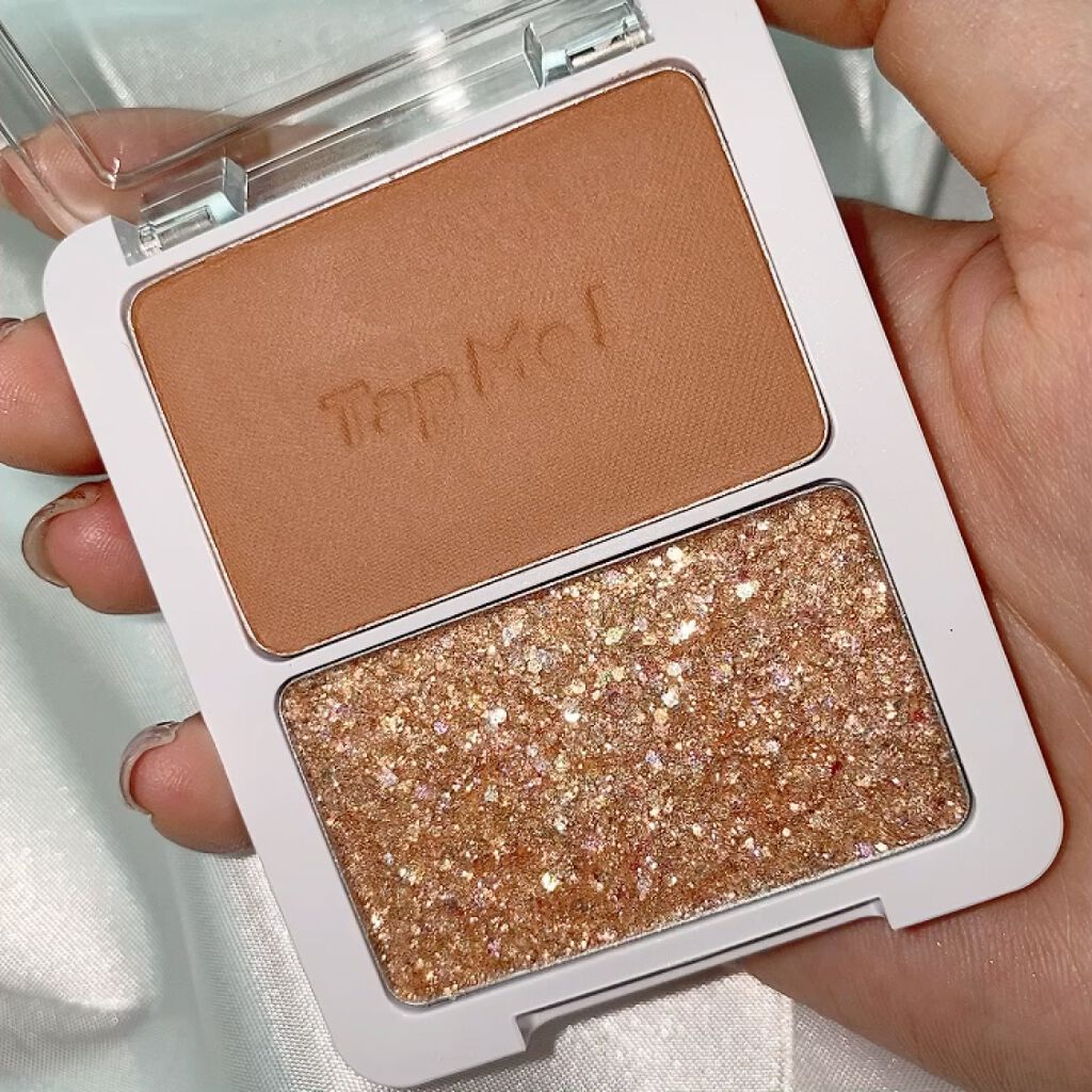- マットな質感のシャドウとラメが入っているシャドウ、2種類のシャドウで構成されているアイシャドウパレット。 マットな質感のシャドウはチークやシェティングとして使うのがおすすめ目元はもちろんフェイスや体どこにでも使用可能。