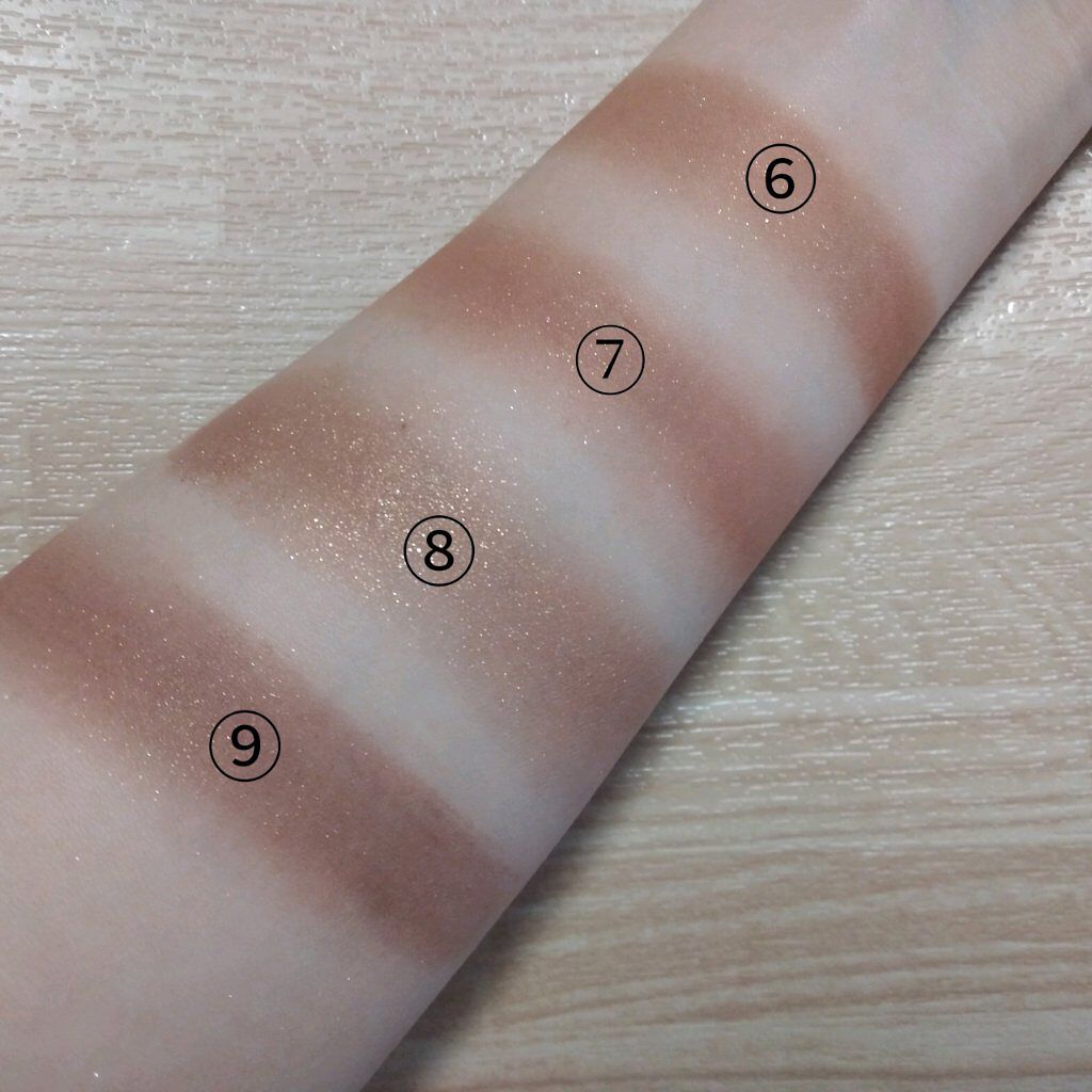 100円とは思えない発色の良さで、ラメが細かいものからグリッターまで色・質感が違うものが入っています イエベ向きの無難なブラウンで使いやすい🙆♀️ 全体的に粉飛び、崩れやすさがあるので、アイシャドウベースを使った方がいいと思います🦖⋆͛