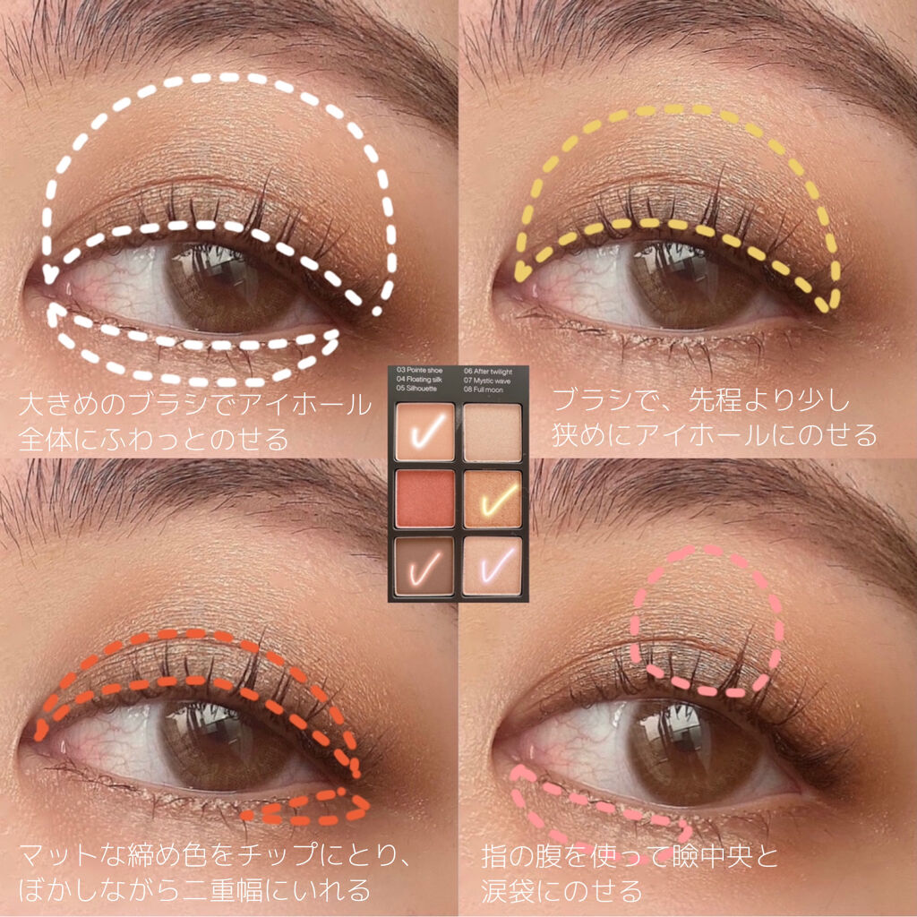 - 1冊に様々なテクスチャーのアイシャドウ 6色,、チークブラッシャー 2色、リップ 2色。 ◆First Step デイリーメイク、出勤メイク、面接メイクなど 最もベーシックなメイクルックを演出したい方におす すめ ◆Frutto Foresta フルーティーなカラーの組み合わせ。さわやかでカラフルな メイクルックを演出したい方におすすめ ◆Solar on the Rise グリッターとシマーが入ったテクスチャー、強烈な色味で 挑発的なメイクルックを演出したい方におすすめ