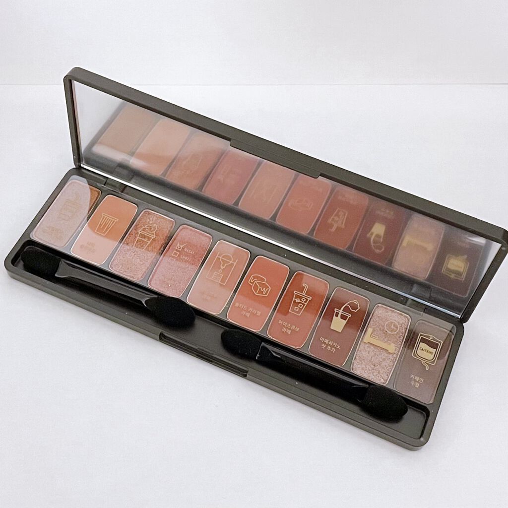 ☆ETUDEプレイカラーアイズカフェインホリック生産終了ETUDEHOUSE自体のアイシャドウパレットです。マット多めのパレットで、今回は左から5番目のピンクっぽいカラーを二重幅に塗り、右から3番目の赤茶色をアイラインのように使いました。発色...