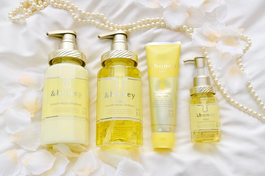&honey【アンドハニー】シルキースムースモイスチャーヘアパック1.5からまりやゴワつきを保水力でケアしてくれるヘアパック🎀製品の90%以上をオーガニックオイルやケラチンなどの保湿&保護成分で構成されています(⁎ᴗ͈ˬᴗ͈⁎)香りはイエロー...