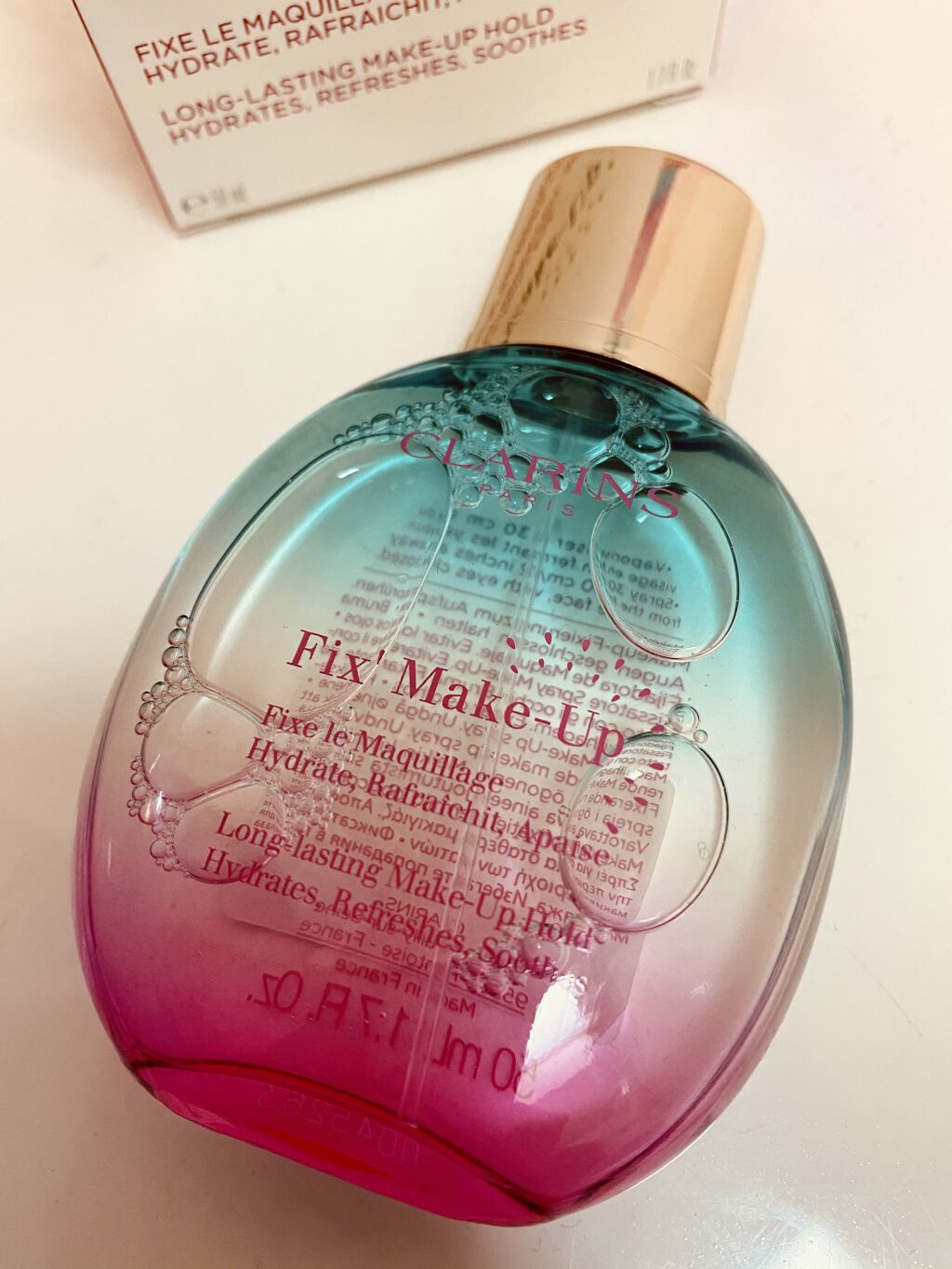 \メイクのお守りミストといえばこれ/💐CLARINSフィックスメイクアップN50mL¥5,060メイクの前にシュッとしたスポンジで叩いてメイクの仕上げにシュッとして乾かせばしっかりメイクキープしてくれるミストは細かくて香りはバラ🌹の...