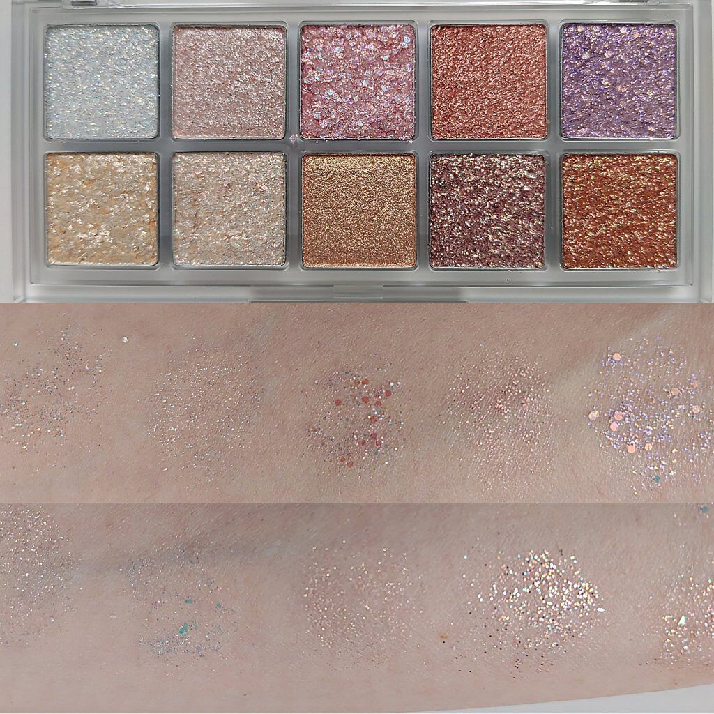 この06は全部ラメ入り✨ 発色もそこまで強くないので全員におすすめ️⭕️ アイシャドウの輝きといいパケといい このブランド自体が宝石ですよね🥹 輝きがすごい なんかメタリックぽさもあるんですよね🤔✨