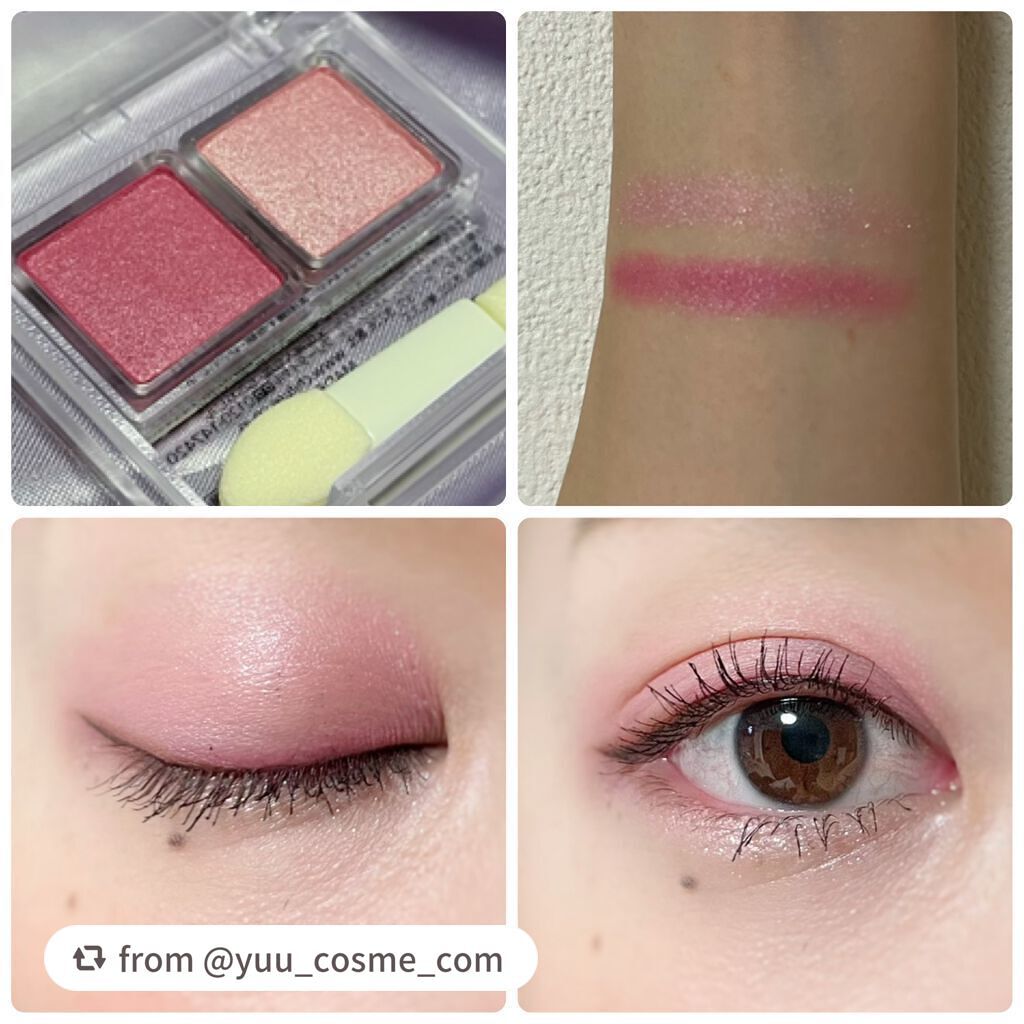 - あざやか美発色!なりたいカラーメイクが実現する遊べるアイシャドウ。 ベーシックカラーからトレンドカラーまで、 豊富なカラーバリエーションが揃う2色セットのアイシャドウ。 2色のカラーを順番になじませるだけで簡単にアイメイクが完成します。 見た目通りの色が発色し、単色メイクやグラデーションメイクにも使える自由自在なアイシャドウパレットです。 無香料 【商品特徴】 ・しっとり感を与えるオイル*1 配合で粉っぽさがなく、肌にピタッと密着します。 ・ラスティング成分*2配合で美しい発色が持続します。 ・携帯に便利なミニサイズ。しっとり肌ざわりの良いチップ付です。 *1ジメチコン *2トリメチルシロキシケイ酸 【使用方法】 淡い色をアイホール全体にのばしたあと、濃い色を目の際から上に向かってぼかします。