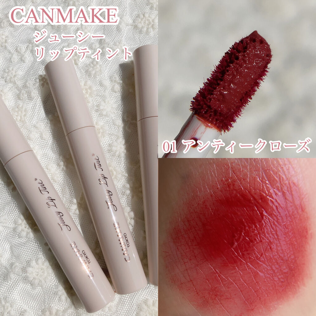 \ちゅるんリップ/キャンメイクジューシーリップティント01アンティークローズ¥660この圧倒的ちゅるん感…伝わりますでしょうか!!🥹色持ちもとてもいいしマスクに付きにくいです!ちゅるちゅるむっちりな唇に仕上がるのでほんと好き🤭💗...