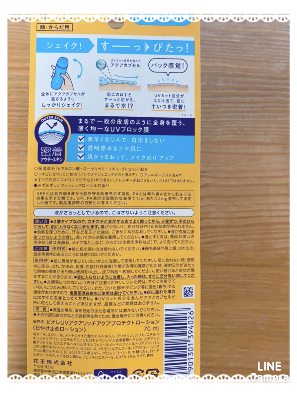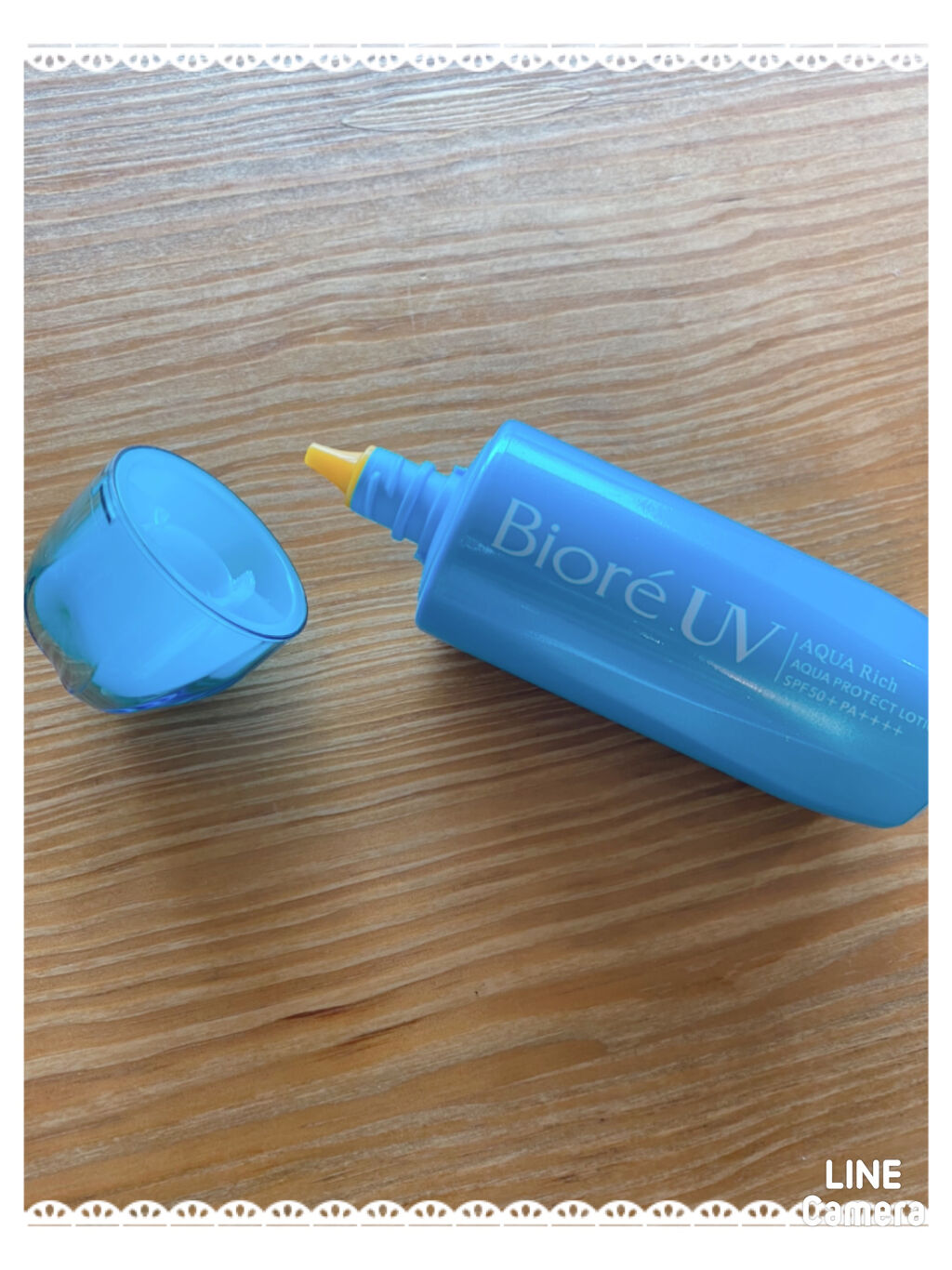 ビオレUVアクアリッチアクアプロテクトローションを使ってみたよ🩵SPF50+PA++++顔とからだ両方使用可!メイクのりをUPさせてくれて、水光肌みたいなツヤ感も出るから気に入ってる🩵UVカット成分が含まれたアクアカプセルが入ってるよ✨想像よ...