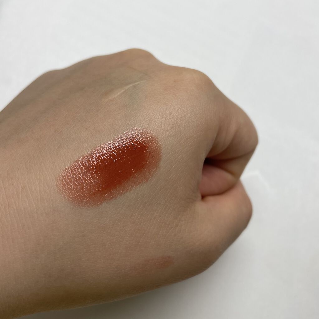 【色もち】マスクにはつかないですが、こすると落ちるので、想像の期待よりは色もちは良くないです。 【質感】塗った最初はツヤがありますが、1分くらい経つとマットに変わります! 【良いところ】本当にマスクにつかないです! 【イマイチなところ】店頭で見た時やネットで見るとイエベに似合いそうなブラウンなのですが、実際に自分の唇に塗るとあずき色みたいになって、思った色と違いました😭