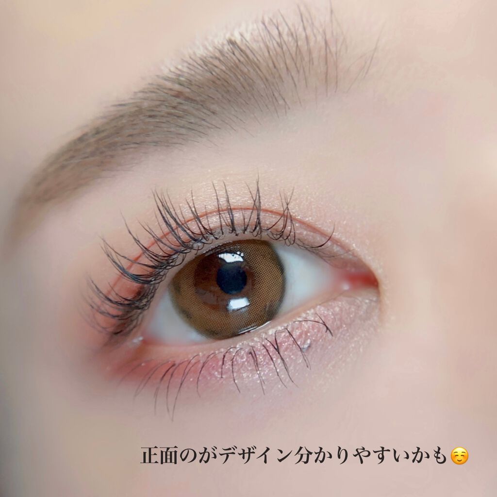 ぼやっとした太めのフチから、ブラウンがじゅわっと広がるような可愛いデザイン。 装着してみると、暖かみがあるのに透明感が出るようなナチュラルで柔らかい印象の目元に。 着色直径も13.2mmと小さめなので、ナチュラルでぼんやりとしたレンズがお好きな方に🤎